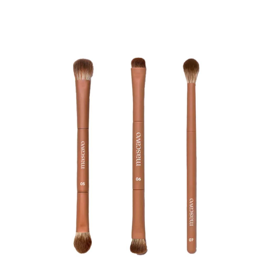 Kit de Pincéis de Maquiagem Mascavo Pro SeriesPincel de sombra, Pincel para detalhes e Pincel para esfumar os olhosO Kit de Pincéis Mascavo Pro Series reúne 3 pincéis de alta performance, ideais para quem busca praticidade e acabamento impecável em qualquer maquiagem. Desenvolvido para artistas profissionais e também para iniciantes apaixonadas por make, o kit de pinceis permite criar desde produções leves do dia a dia até maquiagens mais elaboradas, sempre com precisão e sofisticação. Com 3 pincéis sintéticos de diferentes funções, o Pincel Pro Series modelo 05: Duplo para sombra proporciona conforto na aplicação e controle total do produto. O Pincel Duplo para Sombra da Mascavo é ideal para quem busca precisão e acabamento profissional na maquiagem dos olhos. Perfeito para aplicar e esfumar sombras de diferentes texturas, garantindo um olhar definido e sofisticado. Já o Pincel modelo 06: Duplo para detalhes é essencial para adicionar pontos de luz à maquiagem além de ser perfeito para esfumar pequenas áreas e alcançar pontos difíceis. E o Pincel modelo 07: para Esfumar é perfeito para quem quer garantir um esfumado homogêneo, permitindo a passagem das cores entre as sombras. Com este Kit de Pincel Mari Saad você vai realçar a sua maquiagem com precisão, qualidade e conforto. Benefícios do Kit de Pincéis EssentialsVersatilidade: 3 pincéis com diferentes funções para rosto e olhosAcabamento profissional em qualquer tipo de makePerfeito para aplicação de produtos líquidos, cremosos ou em póCerdas sintéticas ultramacias que garantem conforto e precisãoIdeal tanto para uso profissional quanto para uso pessoal TecnologiaCerdas sintéticas ultramacias: proporcionam aplicação uniforme, sem marcar a pele, com toque suave e confortável. Design multifuncional e ergonômico: cada pincel é projetado para atender funções específicas, oferecendo precisão e praticidade em todas as etapas da maquiagem. Pincéis que compõem o KitPincel Duplo para Sombra Pro Series 05: ideal para aplicar e esfumar sombras de diferentes texturas, garantindo um olhar definido e sofisticado.Pincel Duplo para Detalhes Pro Series 06: essencial para iluminar pontos estratégicos, esfumar áreas menores e alcançar cantos mais difíceis.Pincel para Esfumar Pro Series 07: garante esfumado homogêneo e suave, permitindo a transição natural entre as cores das sombras. Como Usar o Kit de Pincéis EssentialsUse o Pincel Duplo para Sombra a extremidade maior com corte chanfrado para aplicar a sombra nas pálpebras.Com a extremidade menor, esfume a sombra no canto externo do olho para profundidade.Aplique iluminador e esfume áreas detalhadas com o Pincel Duplo para Detalhes.Finalize os olhos com o Pincel para Esfumar, criando transições suaves entre as sombras. Como Limpar os Pincéis Mascavo Pro Series EssentialsLave as cerdas regularmente com sabão neutro e água corrente até remover todos os resíduos de maquiagem. Retire o excesso de água com delicadeza e deixe secar naturalmente em local arejado, sempre na posição horizontal para preservar o formato das cerdas. Não utilize álcool isopropílico para higienização dos pincéis.