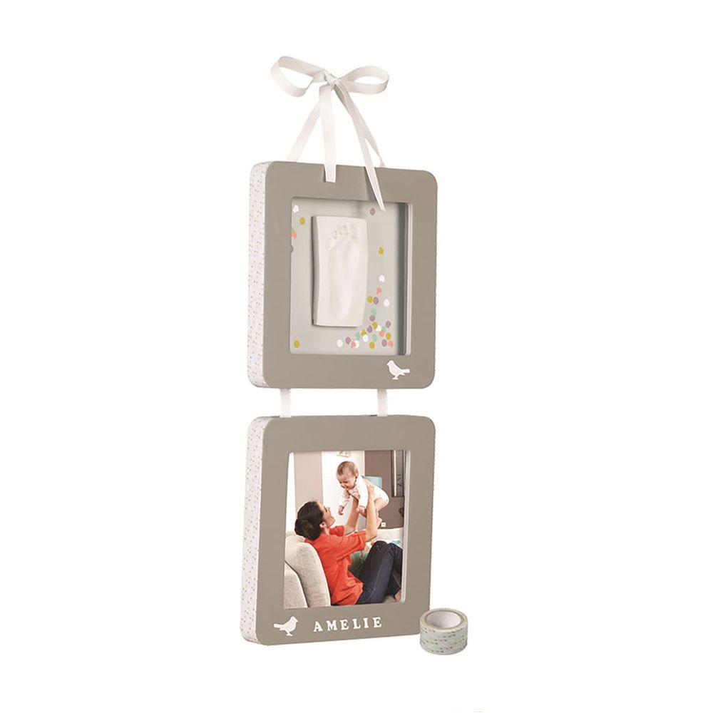 O Kit My Baby Touch contém um porta-retratos duplo de 17x 17 cm, uma massa atóxica e antialérgica branca, um rolinho para ajudar a modelar, uma fita dupla face, que permite montar a impressão da mãozinha ou pezinho de seu bebe em um e no outro colocar uma foto de seu pequeno, além do manual de instruções mostrando o passo a passo.