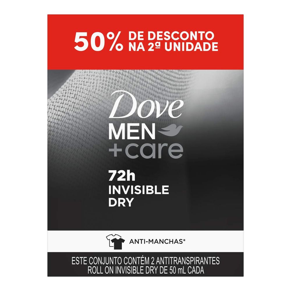 Desodorante Antitranspirante Dove 72h Men+Care Dry Roll-On 2 Unidades 50ml Cada