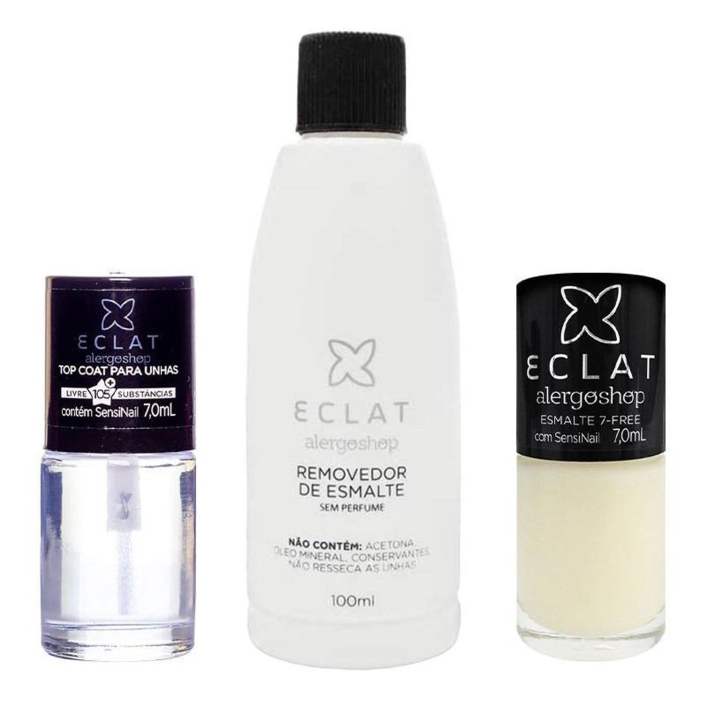 O Esmalte Base Seda Hipoalergênico Eclat è um produto diferenciado do mercado pois ContémSensiNail, um complexo exclusivo com componentes que apresentam propriedades de hidratação, fortalecimento, proteção, resistência e que auxiliam na recuperação das unhas danificadas e na redução da sensibilidade cutânea. O Top Coat Eclatda Alergoshop proporciona extra-brilho, realça a aparência e a duração do esmalte na unha.