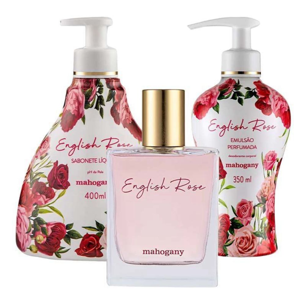 KIT Fragrância English Rose + Hidratante + Sabonete Líquido Mahogany 400ml incolor