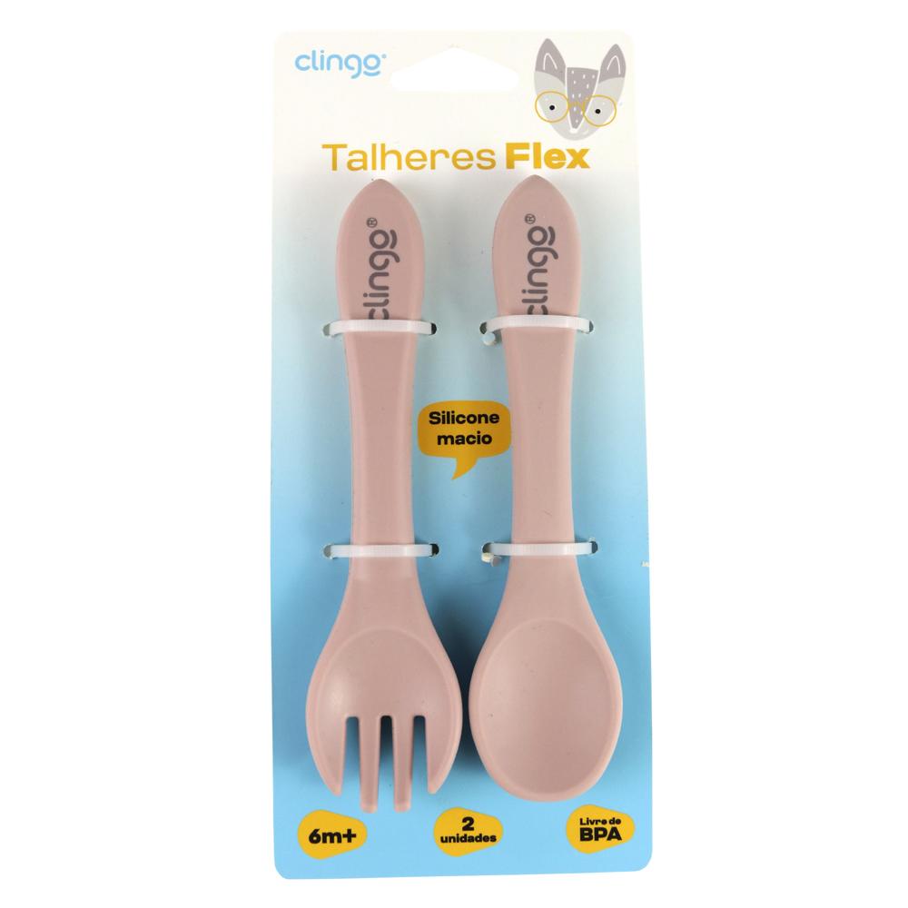 Kit Garfo E Colher Silicone Rosa - Clingo