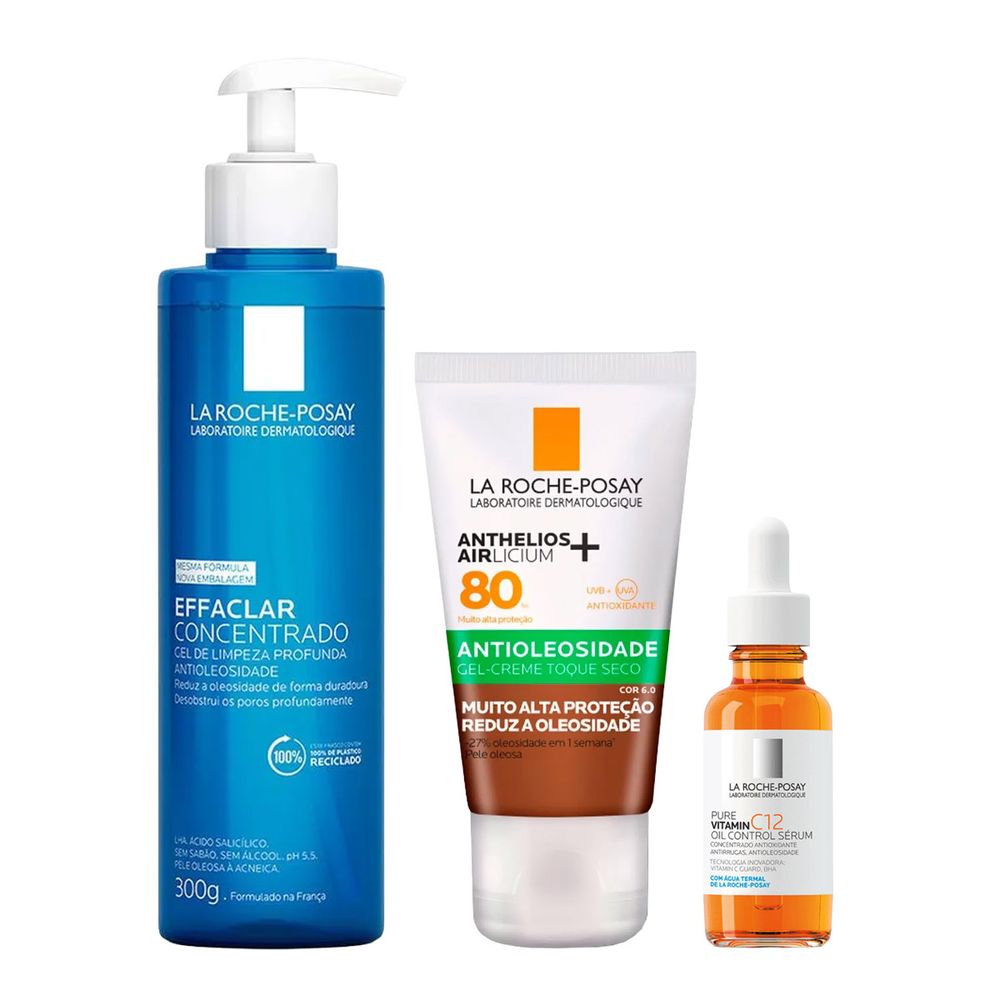 Kit La Roche-Posay Gel de Limpeza Effaclar 300g + Sérum Pure Vitamin C12 30ml + Protetor Solar FPS 80 Anthelios Airlicium Cor 6.0 40g