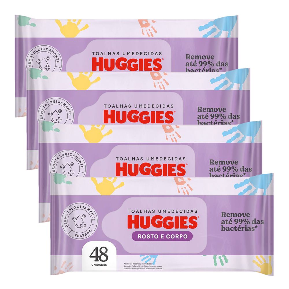 Kit Lenço Umedecido Infantil Huggies Rosto e Corpo 4 Pacotes com 48 Unidades