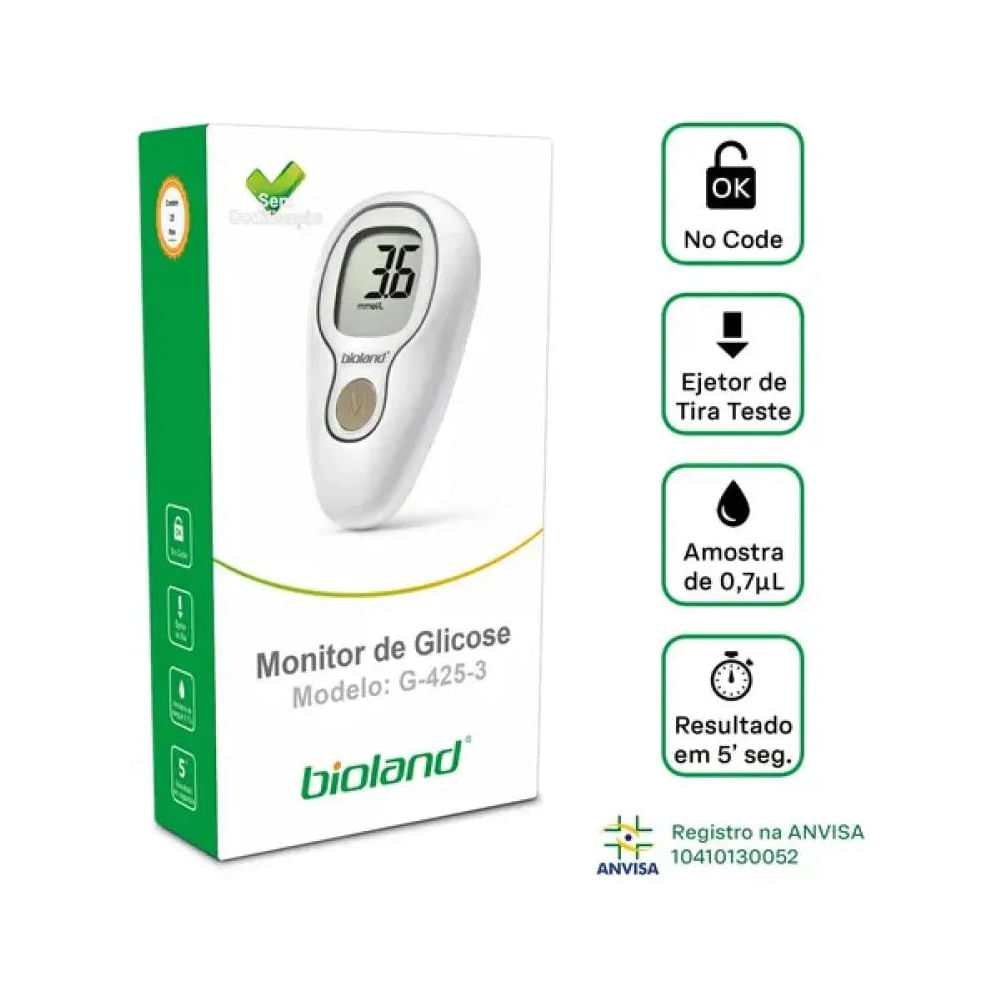Kit Medidor de Glicose Bioland com 25 Tiras e Lancetas Mod G425-3 - Medidor de Glicose Bioland Kit Único Único