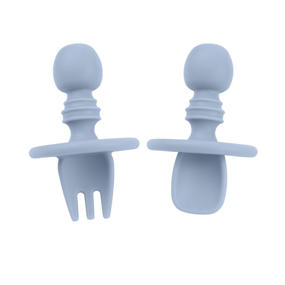Kit Mini Garfo e Colher Silicone Azul - Clingo