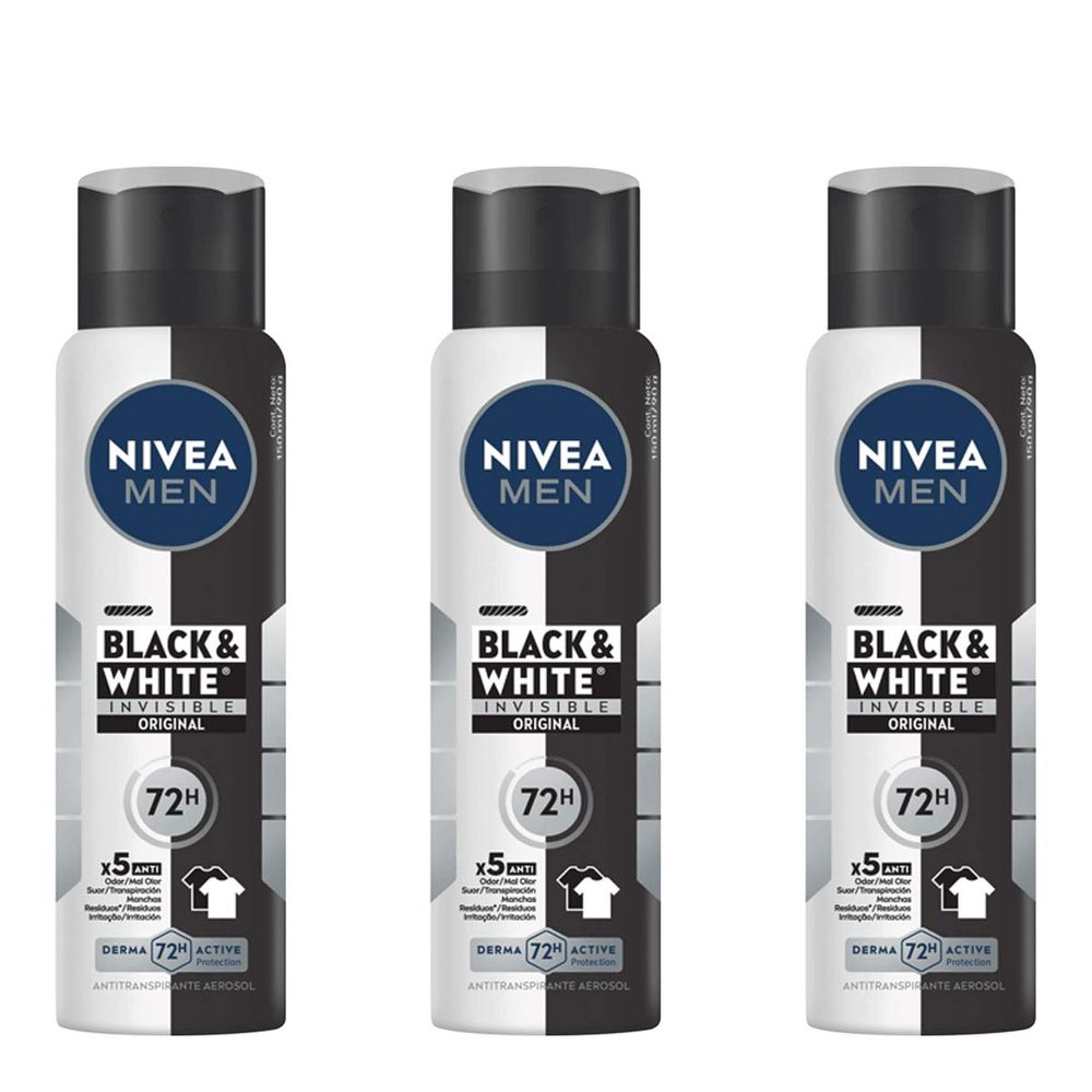 Kit Nivea Antitranspirante Men Black&White Invisible Aerossol 3 Unidades de 150ml