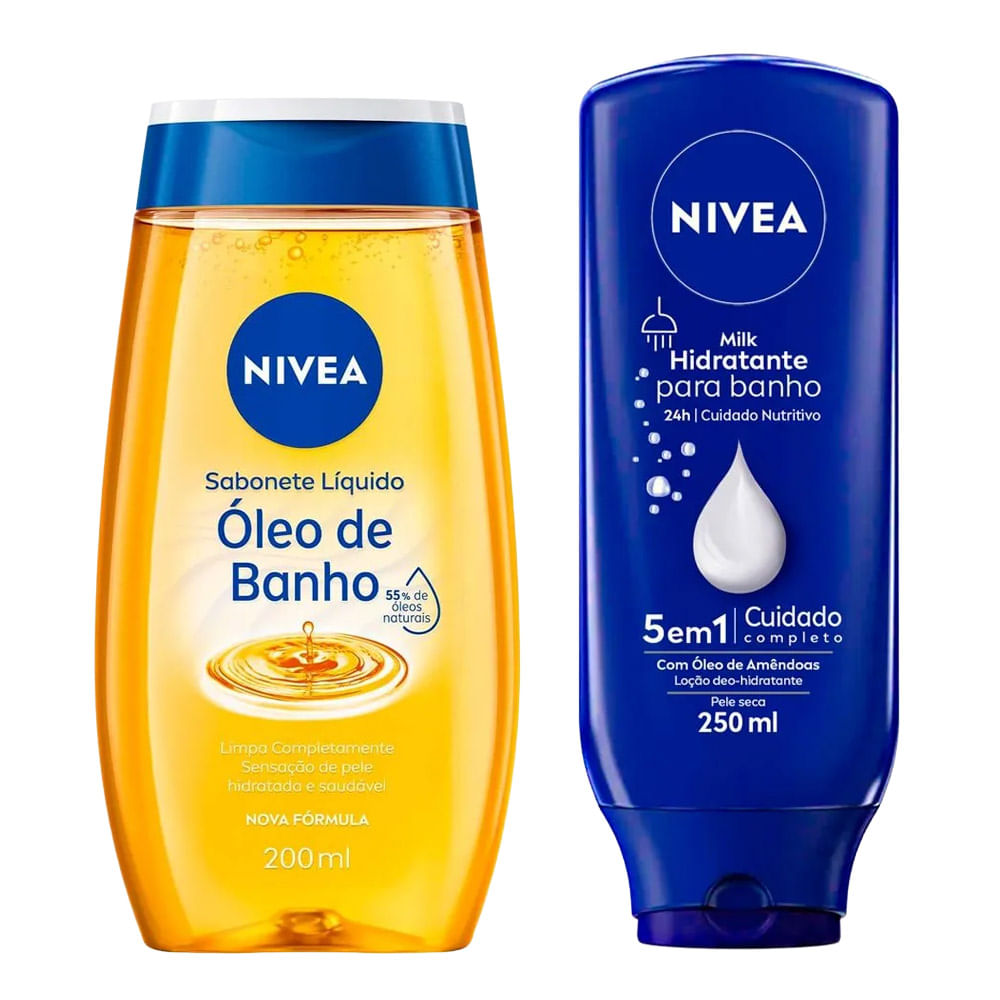 Kit Nivea Óleo de Banho 200ml + Hidratante Para Banho Body Milk 250ml