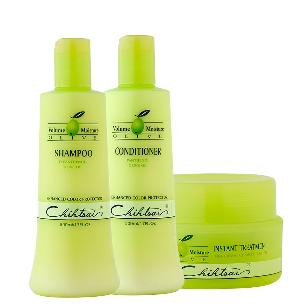 Condicionador N.P.P.E Chihtsai Olive 280 é enriquecido com óleo de oliva e D-pantenol que age profundamente nos cabelos secos, tornando-os macios e fáceis de pentear.