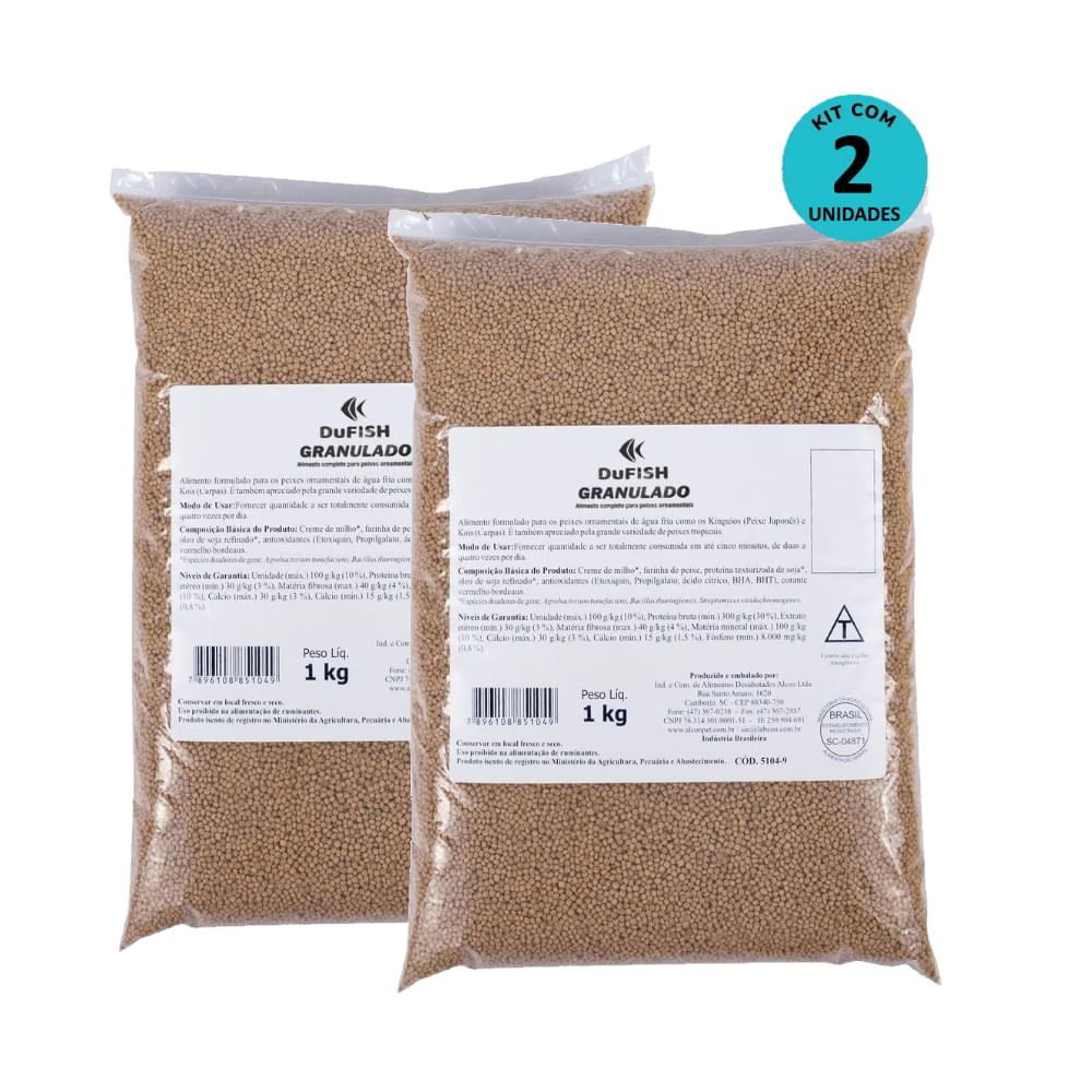 O Kit contém: 2 Ração Alcon Dufish Ornamentais Granulado 1kg
