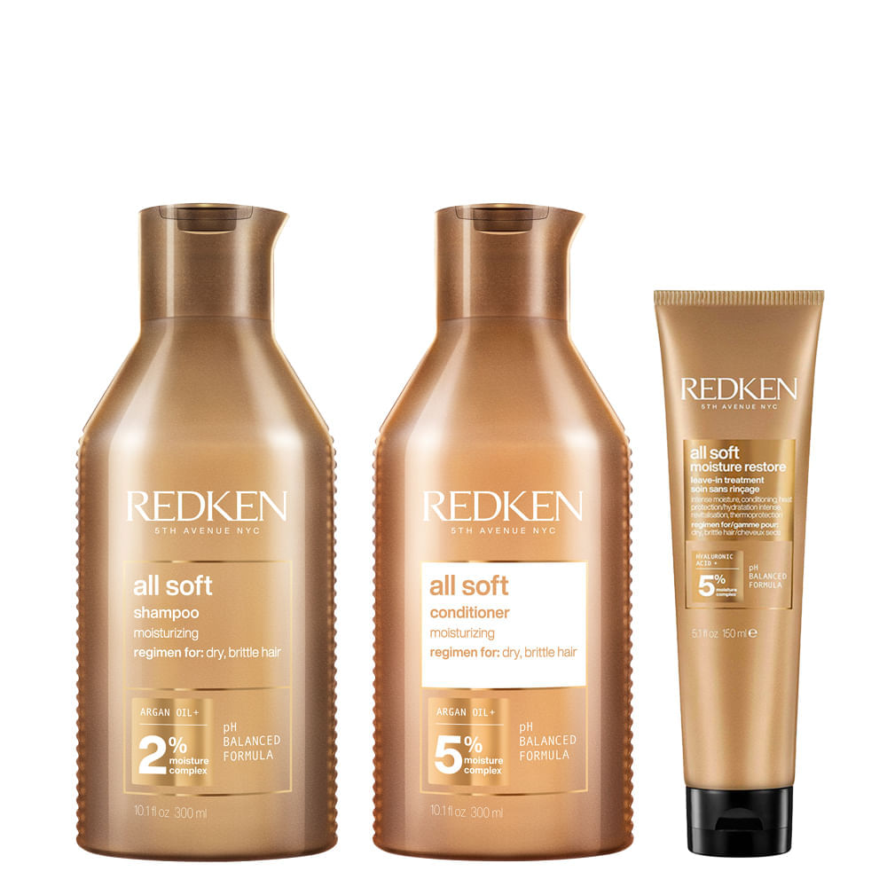 Kit Redken All Soft Condicionador 300ml + Shampoo 300ml + Leave-In 150ml