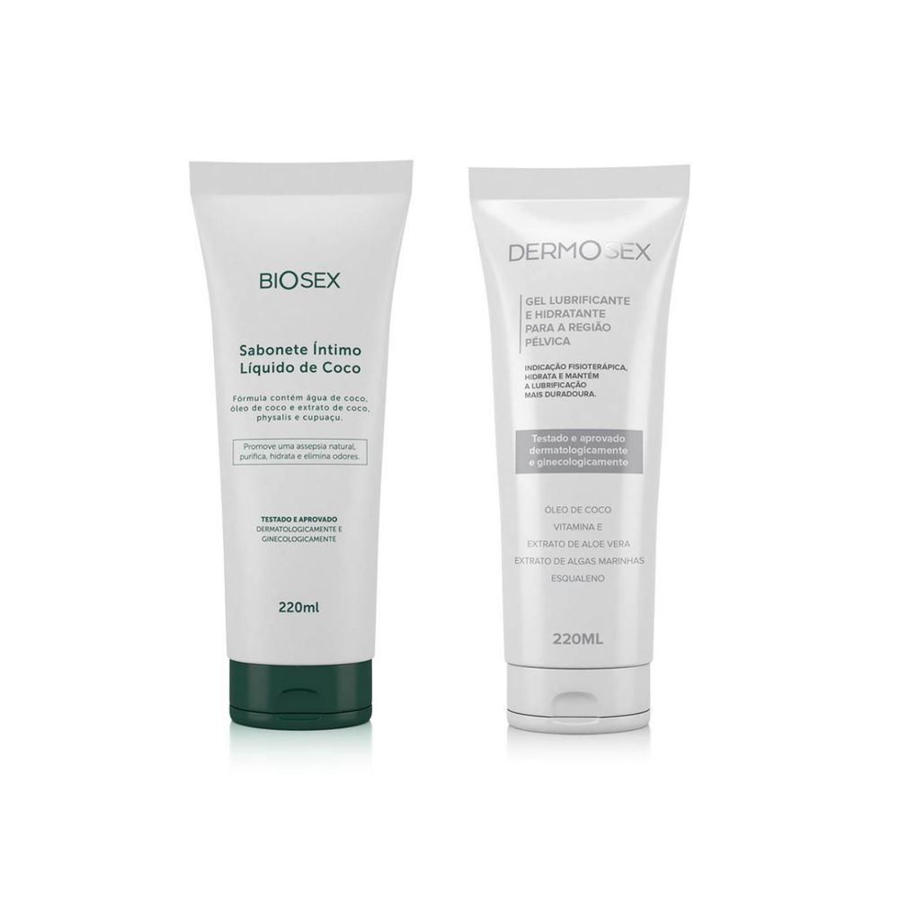 Kit contendo 1 Sabonete Íntimo Liquido de Coco Biosex e 1 Hidratante Lubrificante DermosexSOBRE O HIDRATANTE LUBRIFICANTEO Hidratante Intimo Feminino para a Região Pélvica Dermosex veio para revolucionar o tratamento pélvico. Com a união do esqualeno e óleo de coco, esse produto tem características insuperáveis. Indicação fisioterápica e HidratanteO esqualeno é o principal composto natural da mulher, por isso seu poder é real e natural, já óleo de coco além de poderoso também contribui para regulação da microbiota da região. O efeito produto somado aos efeitos cicatrizantes do Aloe Vera proporcionam regeneração rápida para as microfissuras naturalmente causadas no local.A secura não só causa problemas na relação como também criam dificuldades de locomoção. O Hidratante é o gel ideal também para exercícios ou manobras de fisioterapia pélvica. Principais benefícios:Assepsia natural do cocoHidratação e cicatrizanteLubrificação natura e extrema com Squalene Ativos do produto:Óleo de Coco: O óleo de coco é um produto natural, sem minerais ou componentes químicos pesados, que além de ajudar a manter a região sempre hidratada, tem ação bactericida e antifúngica (lembremos que a candidíase é causada por um fungo, sendo assim, o óleo de coco pode trazer benefícios no sentido de prevenir estas e outras afecções)”.Extrato Vegetal de Algas Marinhas: O Extrato Vegetal de Algas Marinhas tem ação emoliente, cicatrizante, remineralizante, suavizante e hidratante. Tem propriedades que combatem o envelhecimento da pele, é antioxidante, rico em vitaminas C e E, estimula o crescimento celular e a produção de colágeno. Além de todos os benefícios acima é importante salientar que seu alto poder escorregadio faz dele um ativo especial para lubrificação.Extrato de Aloe Vera: Para a pele, é bacana ressaltar que os princípios ativos têm uma alta capacidade de penetração, indo até as camadas mais profundas da pele.A hidratação é um de seus benefícios comprovados cientificamente. Por conta da presença de ligninas e polissacarídeos, a Aloe Vera restitui a água perdida pela pele, o que é super importante para manter a pele hidratada, principalmente, para as mais secas e ressecadas. Esqualeno: O Esqualeno é um super lubrificante e hidratante sem cheiro, de textura leve, não oleosa e de rápida absorção. É composto por 100% esqualeno vegetal derivado da cana de açúcar, que é totalmente sustentável e biocompatível com a nossa pele. O Esqualeno é naturalmente produzido pela mulher, e é responsável pela lubrificação e hidratação a partir dos 20 anos o nosso organismo vai diminuindo a produção desse componente. Portanto o esqualeno derivado da natureza se torna importante aliado para a hidratação e lubrificação, formando uma barreira de proteção contra a perda de água.Resultado: Lubrificação intensa e duradoura, combate candidiáse recorrente e secura.Processo Anvisa: AFE 2.03.200-7 Processo n°: 25351.354108/2020-12-----------------------SOBRE O SABONETE ÍNTIMOO sabonete íntimo Biosex possui fragrância leve e fórmula dermatologicamente e ginecologicamente testada com PH Equilibrado. Em sua formulação encontramos o queridinho e consagrado óleo de coco, suas propriedades hidratantes favorecem muito a região íntima, nutrindo com delicadeza sem irritar. O sabonete íntimo Biosex promove uma assepsia natural, purifica, hidrata e elimina odores. Pode ser usado diariamente na higiene íntima, sendo recomendado em substituição aos sabonetes comuns, devido à fórmula hipoalergênica e ingredientes suaves de sua composição. Composto por componentes naturais e seguros à saúde. Seus ativos já consagrados e com eficácia garantida proporciona proteção que elimina odores e age para que ele não se desenvolva e você fique totalmente segura.Dentre seus componentes temos a água de coco, que pode ser usada para limpar e hidratar a pele e ainda contém ácido láurico, um ingrediente que ajuda a combater fungos, ajudando também no tratamento da acne. Temos também o já consagrado óleo de coco, que ajuda a formar uma camada de proteção contra fungos ajudando a evitar infecções e tratando fungos perniciosos já presentes no local. Possui ação antioxidante e mantém o pH íntimo equilibrado, o que também é essencial para evitar infecções.Principais Benefícios:Uso UnissexUm produto 95% orgânico.Sabonete Biosex é vegano. Eficiência comprovada. Fragrância suave de coco. Livre de parabenos, sulfato e petrolato.PH ideal, ajuda a fortalecer suas defesas naturais.Não irrita, nem agride a pele íntima como os sabonetes comuns.Testado e aprovado dermatologicamente e ginecologicamente. Processo ANVISA: AFE.: 2.03.200-7 | PROCESSO.: 25351.026099/2021-53