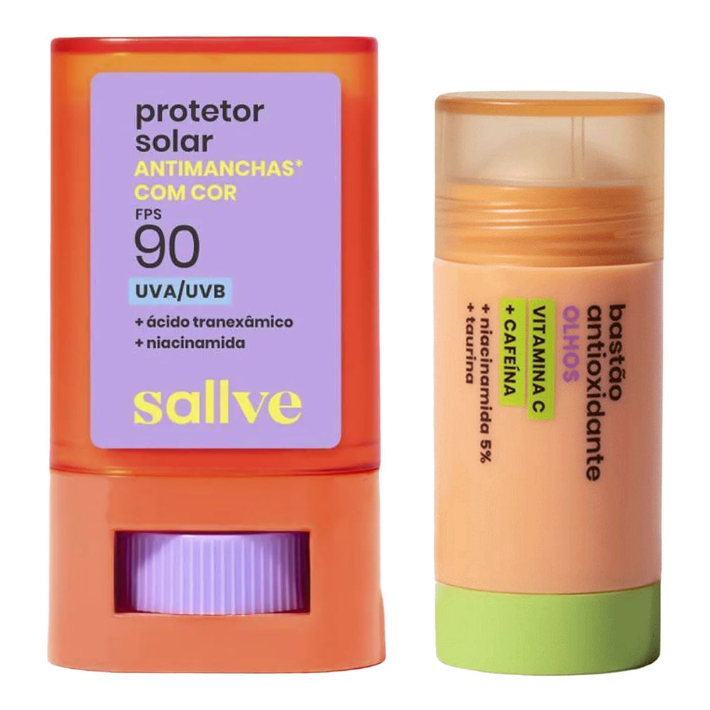 Kit Sallve Protetor Solar FPS 90 Antimanchas Cor 1 15g + Bastão para os Olhos Antioxidante 10g