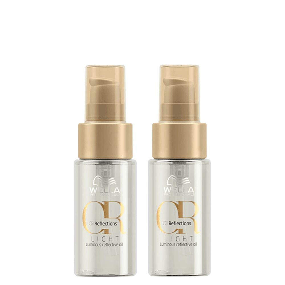 Kit Óleo Capilar Wella Professionals Oil Reflections Light 30ml – 2 Unidades – Nutrição Profunda, Brilho Intenso e Proteção LeveÓleo capilar indicado para cabelos finos a normais, o Kit Óleo Capilar Wella Professionals Oil Reflections Light de 30ml com 2 unidades nutre profundamente os fios sem deixar resíduos oleosos, proporcionando brilho intenso e sensação de densidade aos cabelos.Este kit versátil inclui dois frascos de óleo capilar leve, ideais para uso em tratamentos diários ou como proteção térmica. A linha Oil Reflections utiliza uma combinação balanceada de ingredientes naturais para entregar resultados visuais imediatos, transformando a textura dos fios. O A Reflections Technology destaca a funcionalidade dos ativos em promover hidratação equilibrada, enquanto o produto é cruelty-free e dermatologicamente testado, livre de parabenos, adequado para rotinas limpas e eficientes.Benefícios do KitNutrição profunda que reduz o frizz em até 80%, deixando os fios mais alinhados e fáceis de pentear.Aumento de 200% no brilho intenso, realçando a naturalidade e saúde capilar.Hidratação sem peso, ideal para cabelos finos a normais, que previne a oleosidade excessiva.Proteção contra danos ambientais e térmicos, fortalecendo a fibra capilar por até 72 horas.Sensação de fios mais densos e maleáveis, contribuindo para maior volume controlado.Versatilidade em aplicações, como pré-shampoo ou finalizador, potencializando o cuidado cotidiano.Ação/Resultado dos AtivosÓleo de Semente de Camélia: Sela a cutícula capilar, promovendo nutrição e proteção contra danos externos.Extrato de Chá Branco: Atua como antioxidante, defendendo os fios contra agressões ambientais e oxidativas.Óleo de Macadâmia e Óleo de Abacate: Combinados para hidratar intensamente, conferindo maciez e sedosidade aos fios.Vitamina E: Fortalece a fibra capilar, ajudando na regeneração e restaurando a elasticidade.Fragrância com notas cítricas e florais: Fornece um toque sofisticado e duradouro, com notas de romã, peônia e baunilha para uma experiência sensorial relaxante.Como Usar o Kit Óleo Capilar Wella Professionals Oil Reflections LightAplique 1 a 3 pumps nas palmas das mãos, aquecidas pela fricção, para uma dosagem precisa.Espalhe uniformemente nos comprimentos e pontas, evitando o couro cabeludo para não causar oleosidade.Massageie suavemente com os dedos para promover absorção rápida e completa.Use antes da secagem para proteção térmica ou após para controlar o frizz e realçar o brilho.Repita o processo uma vez por semana ou conforme a necessidade, misturando opcionalmente à máscara da linha para intensificar o tratamento.