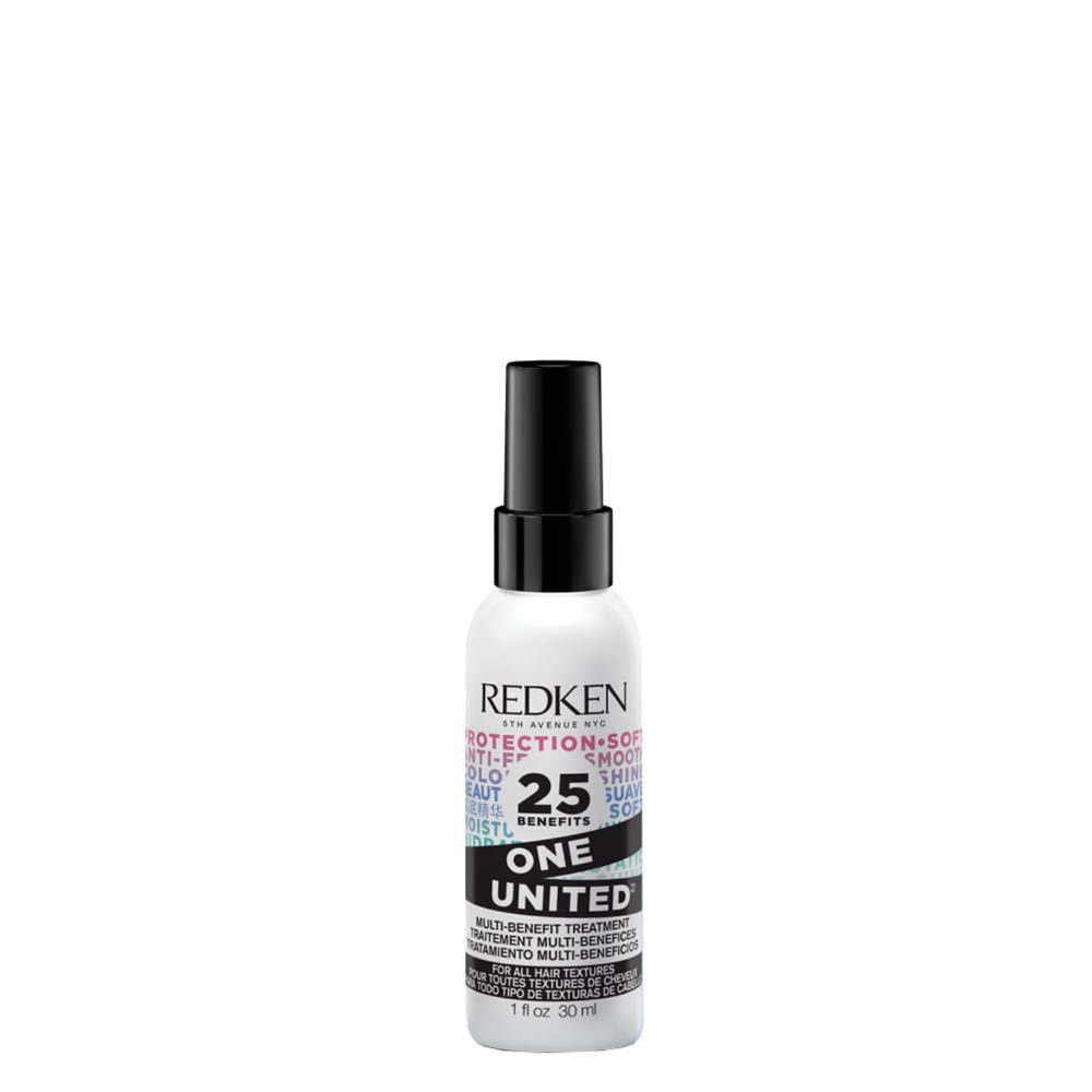 Leave-in Redken One United 30ml –25 Benefícios em 1 Produto, Cabelos Macios e ProtegidosLeave-in indicado para todos os tipos de cabelo, o Redken One United com 30ml é um tratamento multifuncional que entrega 25 benefícios em um único produto, proporcionando hidratação, nutrição e proteção térmica instantâneas. Sua fórmula inteligente age como um verdadeiro aliado na rotina capilar, melhorando a textura dos fios, facilitando o desembaraço e controlando o frizz sem pesar.Com textura leve e tecnologia avançada, o Leave-in Redken One United oferece cuidado completo desde a primeira aplicação. Ele protege os cabelos contra o calor de ferramentas térmicas, ajuda a manter a cor e o brilho por mais tempo e garante toque suave e aparência saudável, ideal tanto para uso diário quanto profissional. Além disso, pode ser combinado com outros produtos da linha Redken para potencializar os resultados de tratamento e finalização, deixando os fios disciplinados, nutridos e com acabamento impecável.Benefícios do Leave-in Redken One UnitedOferece até 25 benefícios em um único produto multifuncionalDesembaraça facilmente e reduz a quebra causada por nósControla o frizz e promove fios alinhados e sedososProtege contra o calor térmico e agressões externasMelhora a maleabilidade e a textura do cabeloAjuda a preservar a cor e o brilho dos fios coloridosIndicado para todos os tipos de cabelo, inclusive quimicamente tratadosAção/Resultado dos AtivosCoconut Oil (Óleo de Coco): Nutre profundamente e confere maciez duradoura, selando as cutículas para um toque aveludado.Complexo Catiônico Condicionante: Cria uma camada protetora que melhora a suavidade, o controle do frizz e a resistência dos fios.Proteína Hidrolisada: Fortalece a fibra capilar, prevenindo danos e mantendo a elasticidade natural do cabelo.Agentes Emolientes: Deixam os fios mais maleáveis e com brilho intenso, sem pesar ou deixar resíduos.Modo de Usar o Leave-in Redken One UnitedAgite bem o frasco antes de aplicar o produto.Vaporize o One United nos cabelos limpos e úmidos, distribuindo de maneira uniforme.Use um pente para espalhar o produto dos comprimentos às pontas.Finalize como preferir: seque naturalmente ou utilize secador e ferramentas térmicas.Também pode ser usado nos cabelos secos para reforçar a maciez e o controle do frizz entre as lavagens.