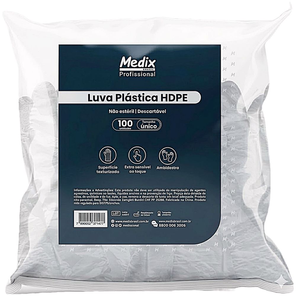 Luva Plástica HDPE Não Estéril Descartável 100 unidades