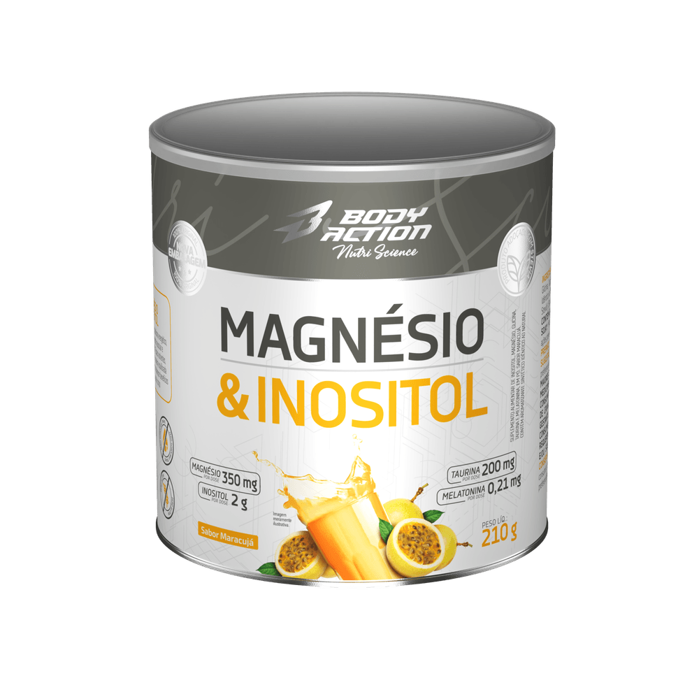 Magnésio E Inositol Taurina Melatonina 210g Bodyaction Sabor Maracujá