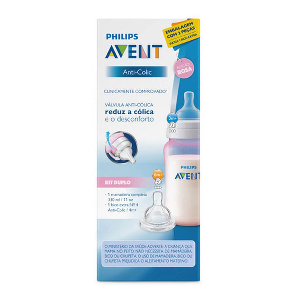 Mamadeira 330ml Rosa + Bico 4 Anti-Colic - Philips Avent