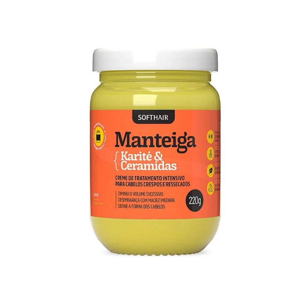 Creme de Tratamento Intensivo Para Cabelos Crespos e Ressecados Manteiga de Karité e Ceramidas Soft Hair 220gBem-vindo(a) ao mundo dos cabelos deslumbrantes e saudáveis! Se você está buscando uma solução definitiva para transformar seus fios, não procure mais. A Manteiga de Karité e Ceramidas da Soft Hair é o segredo há muito tempo guardado para alcançar cabelos invejáveis. Cabelos crespos e extremamente ressecados são tratados profundamente através do alto poder de hidratação do Karité e da força da reconstituição capilar da Ceramidas, formando um manto de proteção e nutrição nos cabelos. Esse produto oferece inúmeros benefícios dessas poderosas substâncias para os seus cabelos. Prepare-se para descobrir como o creme de tratamento intensivo manteiga de Karité e Ceramidas da Soft Hair pode revolucionar a sua rotina de cuidados capilares!O que é Manteiga de Karité?É importante entender o que torna a manteiga de karité tão especial. Originária da África, a manteiga de karité é extraída das nozes da árvore de karité (Vitellaria paradoxa). Rica em vitaminas A, E e F, bem como em ácidos graxos essenciais, essa manteiga natural oferece uma infinidade de nutrientes para nutrir profundamente seus cabelos.Principais benefícios:Reduz o volume excessivo dos fios Desembaraça com maciez imediataCombate ao frizz e define a forma dos cabelosHidratação Intensa para cabelos secos e ressecadosA manteiga de karité é verdadeiramente um presente da natureza para os cabelos. Com seus poderosos benefícios de hidratação, proteção e reparação, ela é uma aliada poderosa na busca por cabelos radiantes e saudáveis. Dê a si mesmo(a) o tratamento que você e seus cabelos merecem e experimente a Manteiga de Karité e Ceramidas da Soft Hair. Transforme sua rotina capilar e conquiste cabelos deslumbrantes como nunca viu antes!ANVISAProcesso: 25351.342270/2012-88 Aut.MS 2.01236.1Modo de uso:Após lavar os cabelos com o Shampoo de sua preferência, aplique e espalhe o produto uniformemente, concentrando-o do meio as pontas. Deixe agir por 10 minutos e enxágue. Se desejar, use touca térmica, toalha quente ou vaporizador. Finalize como de costume. Precauções:Uso Externo. Uso Adulto. Mantenha fora do alcance de crianças. Em caso de irritação, suspender o uso e se necessário procure um médico.---------------------------Principais Tags de Pesquisa:manteiga de karité, manteiga de karite, manteiga de karité cabelo, manteiga de karite preço, manteiga de karité para cabelo, manteiga de karité pura onde encontrar, manteiga de karité pura onde comprar, manteiga de karité para cabelos cacheados, manteiga de karité comprar, manteiga de karité natural, manteiga capilar, manteiga cabelo, manteiga para cabelo crespo, manteigas vegetais para o cabelo, manteiga de karité soft hair, manteiga de karité pura, manteiga de karite pura, manteiga de karite softhair, manteiga de karité para cabelos crespos, manteiga para cabelo soft hair