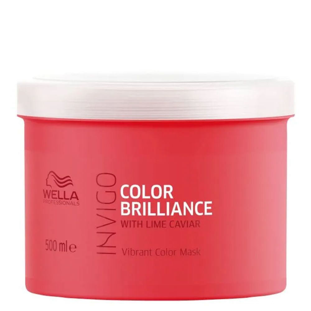 Máscara Wella Professionals Invigo Color Brilliance 500ml – Proteção da Cor por até 7 Semanas, Brilho Intenso e MaciezMáscara indicada para cabelos finos a normais com coloração, a Wella Professionals Invigo Color Brilliance Mask 500ml protege a cor e mantém a intensidade dos pigmentos, combatendo o desbotamento causado por fatores externos como raios solares e lavagens frequentes. Desenvolvida para resultados profissionais imediatos, ideal para uso pós-coloração e manutenção da beleza dos fios em casa.A Linha Invigo Brilliance oferece tratamento especializado para cabelos coloridos, com a Tecnologia Color Brilliance-Blend que utiliza moléculas encapsuladoras de cobre para formar uma barreira protetora ao redor dos pigmentos. Sua fórmula conta com histidina e vitamina E, que neutralizam processos oxidativos pós-coloração, além do extrato de lima-caviar, rico em antioxidantes que intensificam o brilho. O produto é Livre de ingredientes de origem animal, dermatologicamente testado e formulado com pH balanceado para respeitar a integridade da cutícula capilar.Benefícios da MáscaraProteção da cor por até 7 semanas, mantendo a intensidade vibrante dos pigmentos.Selamento da cutícula capilar para evitar a saída de cor e reduzir o desbotamento em até 95%.Hidratação profunda que fortalece a fibra capilar, diminuindo a quebra e a porosidade dos fios.Redução do frizz com ação antiumectante, proporcionando fios mais disciplinados e fáceis de pentear.Brilho intenso graças à reflexão uniforme da luz sobre a superfície capilar restaurada.Proteção antioxidante contra danos ambientais, graças aos bioativos do extrato de lima-caviar.Maciez e sedosidade imediatas, com toque aveludado mesmo após o enxágue.Ação/Resultado dos AtivosTecnologia Color Brilliance-Blend: Combina moléculas de cobre encapsuladas que formam uma rede protetora ao redor dos pigmentos, impedindo seu desgaste precoce durante as lavagens.Histidina: Aminoácido que estabiliza o pH capilar e regula a oxidação pós-coloração, preservando a uniformidade da tonalidade.Vitamina E: Antioxidante que protege a fibra capilar contra radicais livres, mantendo a saúde da cutícula e prolongando a vitalidade da cor.Extrato de lima-caviar: Fonte concentrada de flavonoides e vitamina C que reforçam a barreira de hidratação e aumentam a refletância da superfície capilar.Como Usar a Máscara Wella Professionals Invigo Color Brilliance Aplique após lavar os cabelos com o Shampoo Invigo Color Brilliance, removendo o excesso de água com uma toalha. Distribua uma quantidade generosa da máscara, concentrando nas pontas e áreas mais sensíveis à descoloração. Massageie suavemente para ativar a penetração dos ativos na cutícula capilar. Deixe agir por 5 minutos para que a Tecnologia Color Brilliance-Blend proteja os pigmentos. Enxágue abundantemente até obter fios macios e com brilho refletido.