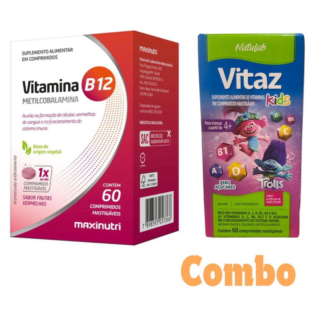 Metilcobalamina B12 sublingual e VitaZ Kids 60cp combo 2