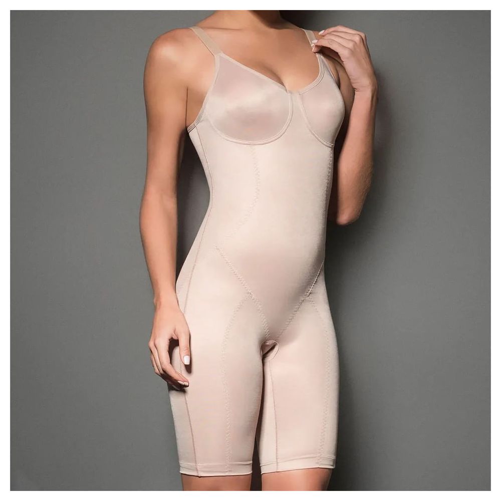 Modelador Feminino c/ Perna Curta S/ Colchetes Ref. 430 Cinta Moderna Características - Modelador Tipo Bermuda c/ Pernas Acima do Joelho - Fundo Aberto, sem Fechamento - Bojo pré moldado sem costura na Mama, com aderência total; - Alças com largura compatível com o manequim; - Reforço Frontal Abdominal Tecido: Cetinete(90% Poliamida / 10% Elastano) Esse Tecido especialmente desenvolvido para lingerie de compressão garante maior durabilidade, resistência e elasticidade além de melhor modelagem com maior sustentação. Não perdendo a função após a lavagem. Por ter como característica a baixa absorção de água, proporciona uma maior sensação de frescor, e a livre respiração da pele. Reg. ANVISA: 80559239001 Indicação de Uso: - Pós-Operatório de Cirurgias Plásticas - Lipoaspiração de grandes áreas tais como: Mama, flancos, parte interna das coxas, culotes, adbome total e região pública. - Regiões Supra, peri e infra Umbilical, Flancos e Região Púbica