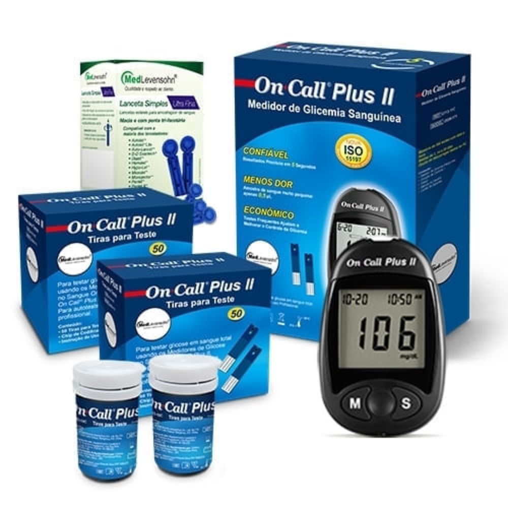 Monitor de Glicose + 100 Tiras de Glicose + 100 Lancetas 100 Tiras