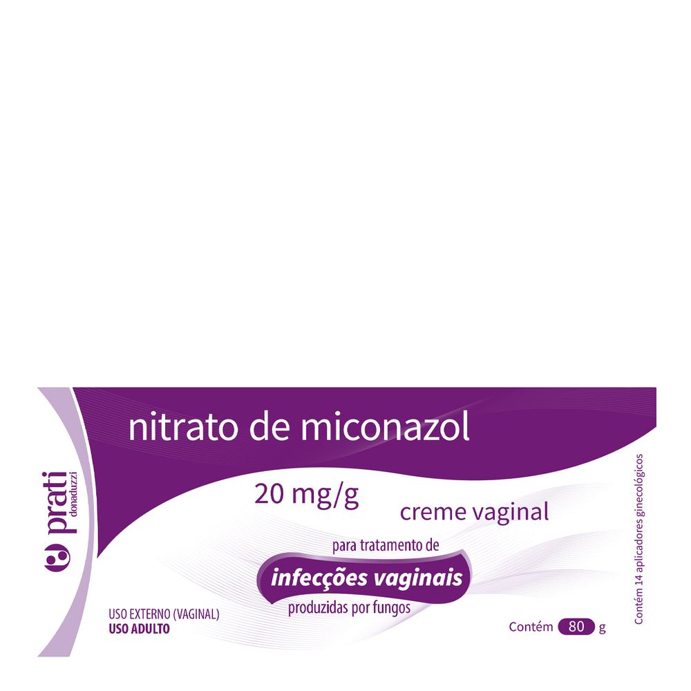Nitrato de Miconazol 20mg Prati Donaduzzi genérico: combate fungos e infecções vaginais. Creme 80g + 14 aplicadores. Confira na Drogaria São Paulo!
