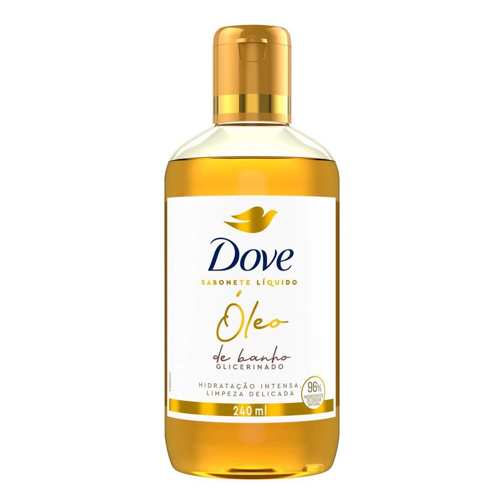 Desfrute de uma nova experiência no banho que regenera a hidratação natural da sua pele. Sinta a diferença do novo Dove Óleo de Banho e a evolução do cuidado na sua rotina de banho diária. O segredo para uma pele bonita é a hidratação diária e, com o novo Dove Óleo de Banho, sua pele ficará visivelmente macia e radiante. Este Sabonete Líquido Óleo de Banho glicerinado possui uma formulação que conta com 96% dos ingredientes de origem natural, que renovam e nutrem a sua pele, oferecendo hidratação intensa e limpeza delicada. Sua fórmula nutre e hidrata a pele enquanto limpa, deixando-a com uma sensação macia e bem cuidada. O Dove óleo de banho glicerinado possui uma textura líquida e faz espuma cremosa durante o banho, além de oferecer uma fragrância gostosa e duradoura na pele, promovendo um banho envolvente e relaxante. Dove Óleo de Banho é de fácil enxágue, garantindo hidratação para a sua pele sem deixar uma sensação oleosa ou vestígios de produto na pele ou no chão do seu banheiro. Para uma melhor experiência no banho, sugerimos o seguinte modo de uso: aplique uma pequena quantidade na mão ou em uma esponja e espalhe suavemente pelo corpo, até formar espuma. Em seguida, massageie a espuma pelo seu corpo e, por último, enxágue com água morna. Uso externo. Dove Óleo de Banho pode ser usado diariamente no corpo e mãos. Eleve a sua experiência de banho com o novo Dove Óleo de Banho! Dove é certificada Cruelty-Free pela PETA, sendo assim, não realizamos e nem realizaremos testes em animais em nenhum lugar do mundo.