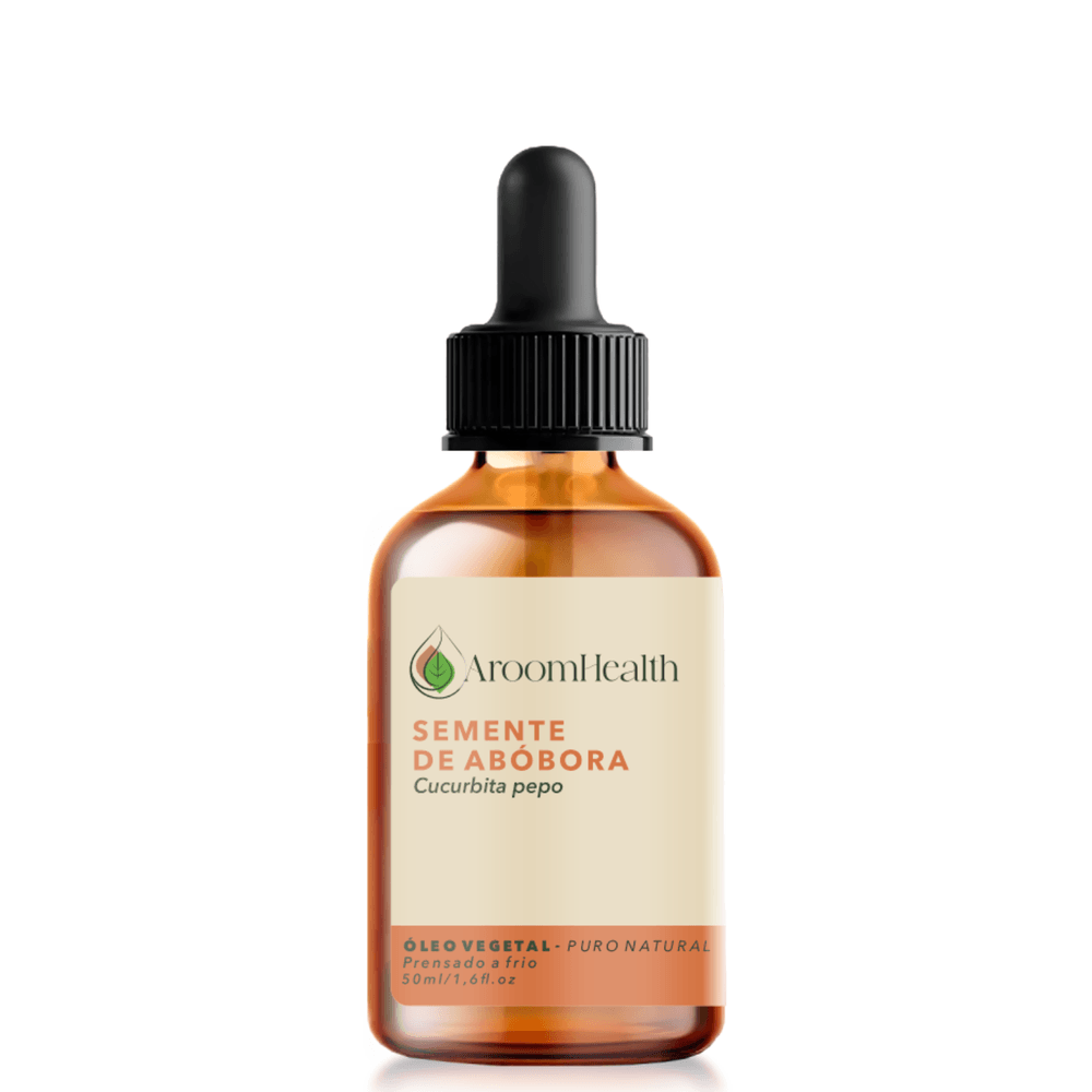 Óleo vegetal puro natural de semente de Abóbora - 50 ml Aroom Health Nome botânico: Curcubita pepoOrigem: MéxicoExtração: Prensagem a frio Produto vegano – Não testado em animaisVidro âmbar com conta gotas, tampa lacre e validade de 2 anos (verifique no rótulo).Óleos vegetais são gorduras extraídas das plantas, desodorizado e seu aroma é   semelhando a de um óleo comum.Fortaleça e hidrate: o poder do óleo vegetal de semente de abóbora para cabelo e pele.BENEFÍCIOS• Rico em ácidos graxos essenciais, o óleo de semente de abóbora ajuda a nutrir e hidratar profundamente a pele.• Fortalece os fios de cabelo, promovendo o crescimento saudável e o controle do frizz.• Reduz inflamações e tem efeito calmante para peles sensíveis e irritadas.• Proporciona brilho e vitalidade ao cabelo, ajudando a restaurar sua saúde natural.• Ajuda a equilibrar a oleosidade da pele, sendo excelente para peles oleosas e com acne.Excelente aliado para peles secas e cabelos danificados. Rico em ácidos graxos essenciais, vitaminas e minerais, este óleo possui propriedades hidratantes, anti-inflamatórias e nutritivas, sendo ideal para tratar peles sensíveis e oleosas, além de estimular o crescimento capilar. *Dicas de uso confira nas fotos do anúncio.PRECAUÇÕES• USO EXTERNO.• Faça sempre o teste de alergia antes do uso.• Gestantes e lactantes devem consultar um médico antes do uso.• Armazene em local seco e fresco, longe da luz e fora do alcance de crianças e animais.• Havendo sensibilidade ao produto, suspender o uso.