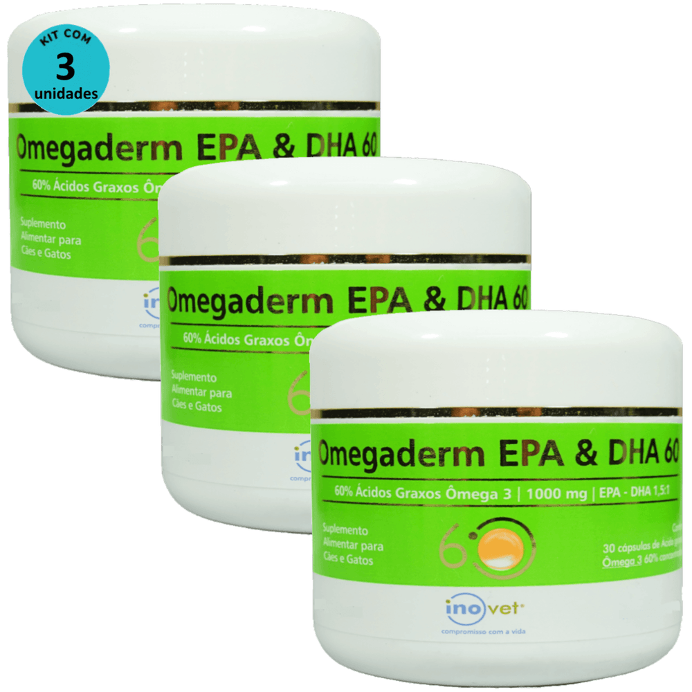 Omegaderm EPA & DHA 60 Suplemento Cães e Gatos 1000mg C/ 30 Cápsulas Kit Com 3