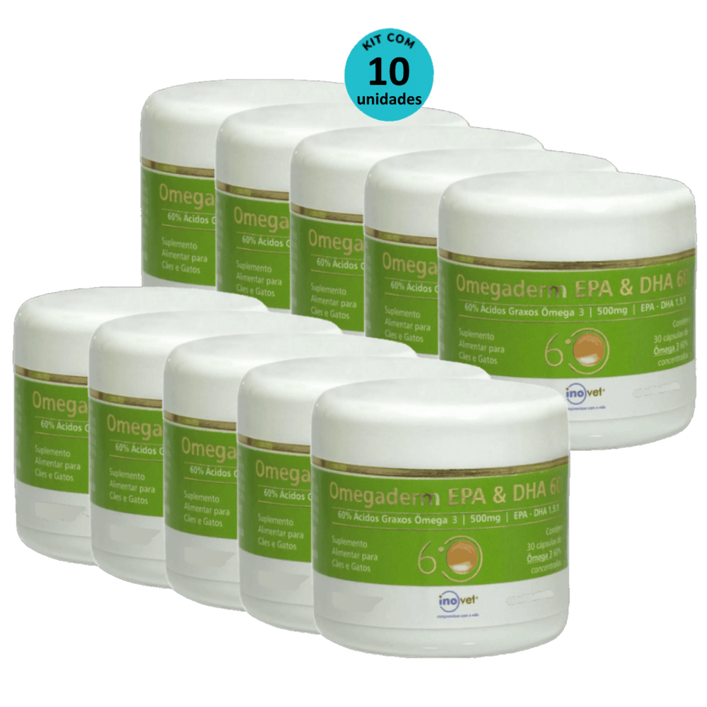 Omegaderm EPA & DHA 60 Suplemento P/ Cães e Gatos 500mg C/ 30 cáp. Inovet Kit com 10