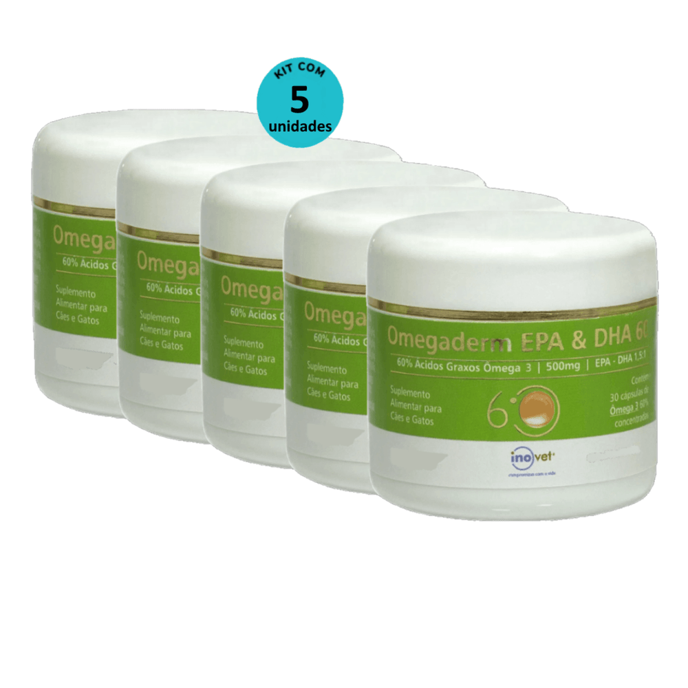 Omegaderm EPA & DHA 60 Suplemento P/ Cães e Gatos 500mg C/ 30 cáp. Inovet Kit com 5