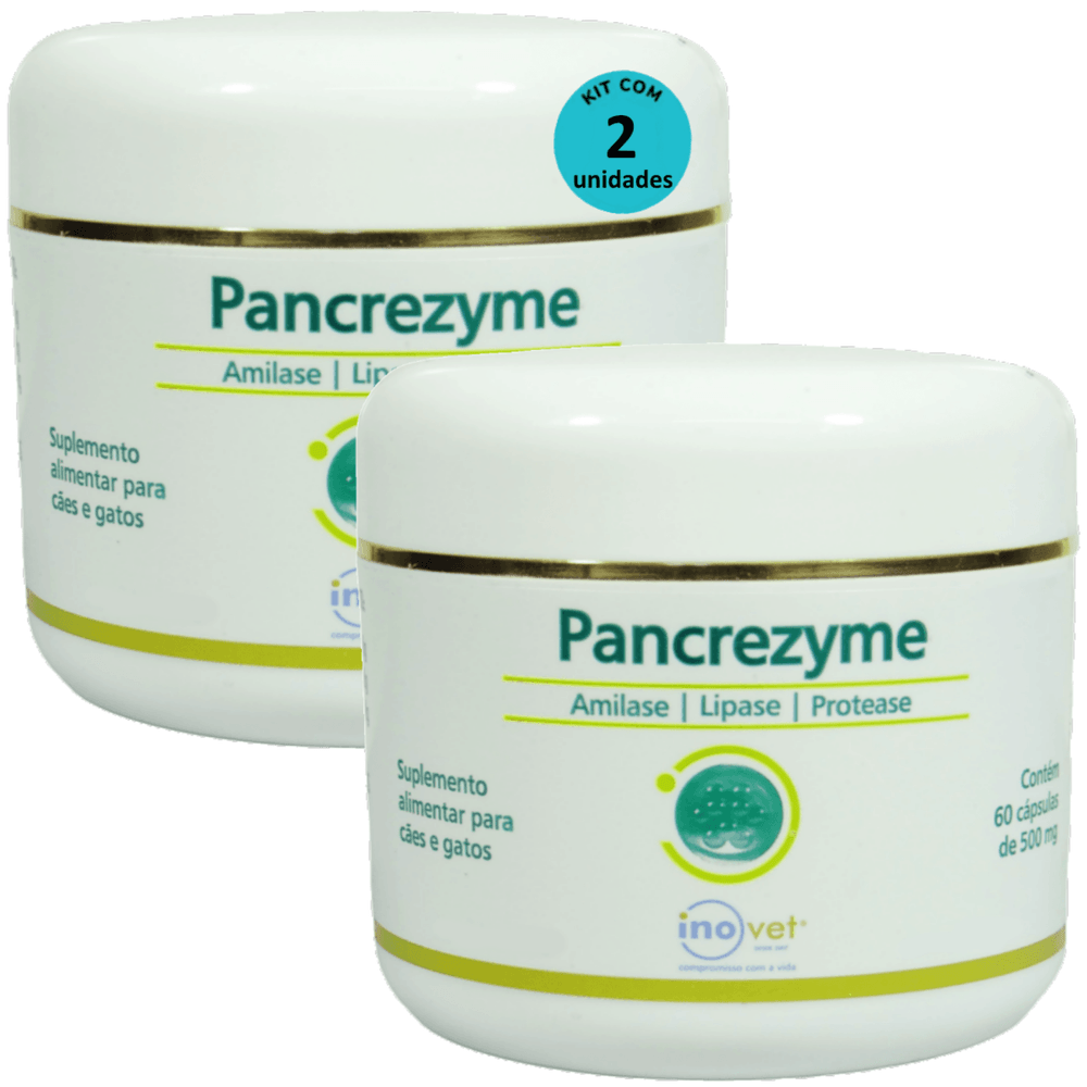 Pancrezyme 60 Cápsulas 500mg Para Cães e Gatos Inovet Kit Com 2