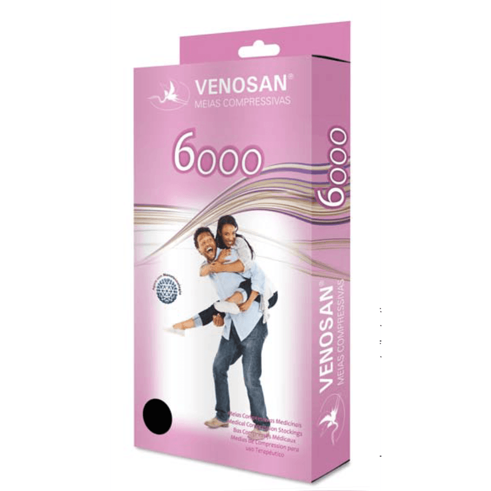 Indicada para Homens e mulheres, desenhada especialmente para pessoas modernas e ativas, a Venosan 6000 entra em uma nova era de meias medicinais com nova aparência, sensibilidade e conforto de uma meia de grife. A sua textura possui a suavidade da seda, sendo elegante, fina e muito confortável, atendendo às exigências médicas e da moda. INDICAÇÕES 20 - 30 mmHg Média compressão Sensação de peso e fadiga nas pernas Varizes durante a gravidez Varizes com tendência para edema Após escleroterapia de pequenas veias Disponível nos modelos ponta do pé aberta ou fechada. Modelo AD na cor preta, somente na ponta de pé fechado. 30 - 40 mmHg Alta compressão Varizes com edema Varizes severas durante a gravidez Após ?ebotrombose super?cial Após escleroterapia ou ?ebectomia de grandes veias Insu?ciência venosa crônica COMPOSIÇÃO 65% Poliamida / Nylon 35% Elastano / Spandex COMPRESSÃO 20 - 30 mmHg