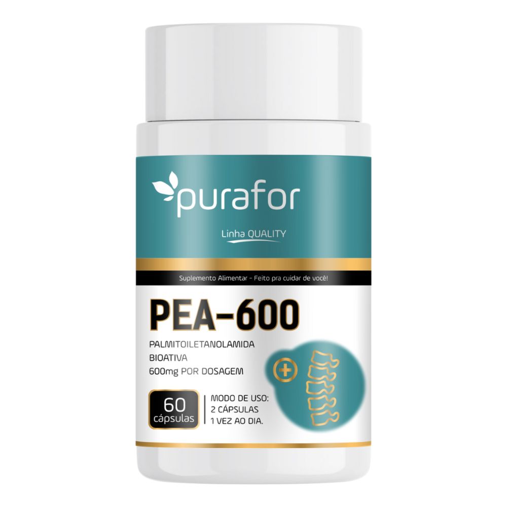 PEA-600 Palmitoiletanolamida Bioativa da Purafor, um suplemento tecnologicamente avançado que entrega 600mg de PEA bioativa por dose, com alta biodisponibilidade e pureza superior. ???? A Palmitoiletanolamida (PEA) é um composto natural produzido pelo corpo e presente em alimentos como gema de ovo e soja. Ela desempenha um papel essencial na modulação da resposta inflamatória, regulação da dor, equilíbrio do sistema imune e suporte neurológico.  ???? O PEA-600 da Purafor é indicado para pessoas que buscam qualidade de vida de forma natural e eficiente, especialmente em casos de desconfortos crônicos, estresse, baixa imunidade e estilo de vida desgastante. ? Principais Benefícios do PEA-600 Bioativo: ? 600mg de Palmitoiletanolamida Bioativa por dose? Ação moduladora do sistema endocanabinoide? Redução de processos inflamatórios silenciosos? Suporte à saúde neurológica e cognição? Melhora da resposta imunológica natural? Conforto físico e alívio de desconfortos corporais? Auxílio no sono e no equilíbrio emocional? Livre de glúten, lactose, conservantes artificiais e aditivos ???? Para quem é indicado? ???? Pessoas com dores crônicas ou inflamações recorrentes???? Quem busca suporte ao sistema nervoso e imunológico???? Pessoas em processos de envelhecimento saudável???? Indicado para quem sofre com baixa energia, estresse ou sono ruim ???? Diferenciais da Fórmula Purafor: ???? Matéria-prima com grau farmacêutico e pureza certificada? Alta absorção com tecnologia de encapsulamento avançado???? Produto natural, sem efeitos colaterais significativos ???? Modo de uso recomendado:Ingerir 2 cápsulas ao dia, preferencialmente com uma refeição. ???? Contém: 1 frasco com 60 cápsulas, suficiente para 30 dias. Quantidade60 cápsulas  IngredientesPalmitoiletanolamida, excipiente amido e anti-umectante talco famacêutico. Composição da cápsula: gelatina, umectante glicerina, corante dióxido de titânio (INS171). NÃO CONTÉM GLUTÉN Modo de ConservaçãoConservar este produto bem fechado, em lugar fresco, seco e ao abrigo da luz, calor e umidade. Após aberto, consumir o produto em até 90 dias. Modo de UsoIngerir 2 (duas) cápsulas, uma vez ao dia. Produto indicado para o grupo populacional Adulto 19 anos.“Este produto não é um medicamento”.“Não exceder a recomendação diária de consumo indicada na embalagem”.“Este produto não deve ser consumido por gestantes, lactantes e crianças”.“Mantenha fora do alcance das crianças”. Registro Anvisa:Produto comunicado a Anvisa e dispensado da obrigatoriedade de registro conforme RDC 240/18 e 243/18. 10 Perguntas e Respostas Mais Buscadas1. O que é Palmitoiletanolamida (PEA)?É uma substância natural com ação anti-inflamatória e neuromoduladora, produzida pelo nosso corpo e essencial para manter o equilíbrio fisiológico. 2. Para que serve o PEA-600 da Purafor?Atua na redução de inflamações, no suporte imunológico, no alívio de desconfortos crônicos e no bem-estar emocional. 3. Qual a diferença entre o PEA-600 e outros suplementos?Possui alta concentração (600mg) de PEA bioativa por dose, com pureza superior, tecnologia de absorção rápida e qualidade certificada. 4. Ele ajuda em dores e inflamações?Sim! A PEA tem sido estudada por seu efeito na modulação de dor e inflamações silenciosas no organismo. 5. O PEA-600 tem efeito calmante ou atua no sono?Indiretamente sim. Por reduzir inflamação e equilibrar o sistema nervoso, auxilia na melhora do sono e do estresse. 6. Pode ser usado junto com medicamentos?Não há interações conhecidas, mas sempre consulte seu médico se estiver em tratamento contínuo. 7. O produto é natural?Sim. É um composto natural sem aditivos artificiais. 8. Em quanto tempo começo a sentir os efeitos?Alguns efeitos podem ser percebidos em semanas de uso contínuo, dependendo da resposta individual. 9. Quem não deve tomar PEA-600?Gestantes, lactantes e pessoas com condições clínicas específicas devem consultar um profissional antes de iniciar o uso.  10. Onde posso comprar?Disponível com exclusividade no site da Kuide