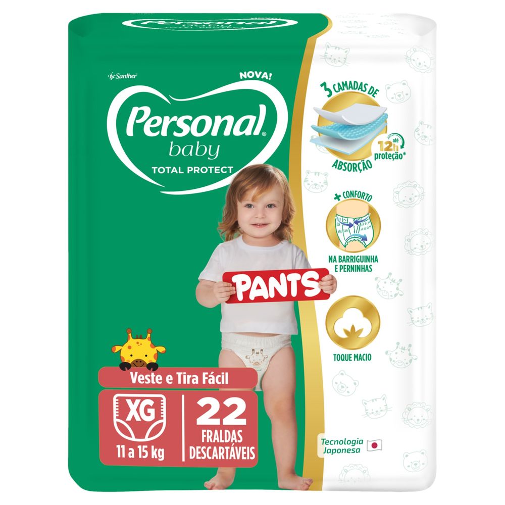 Personal Fralda Baby Total Protect Pants XG 22 Unidades