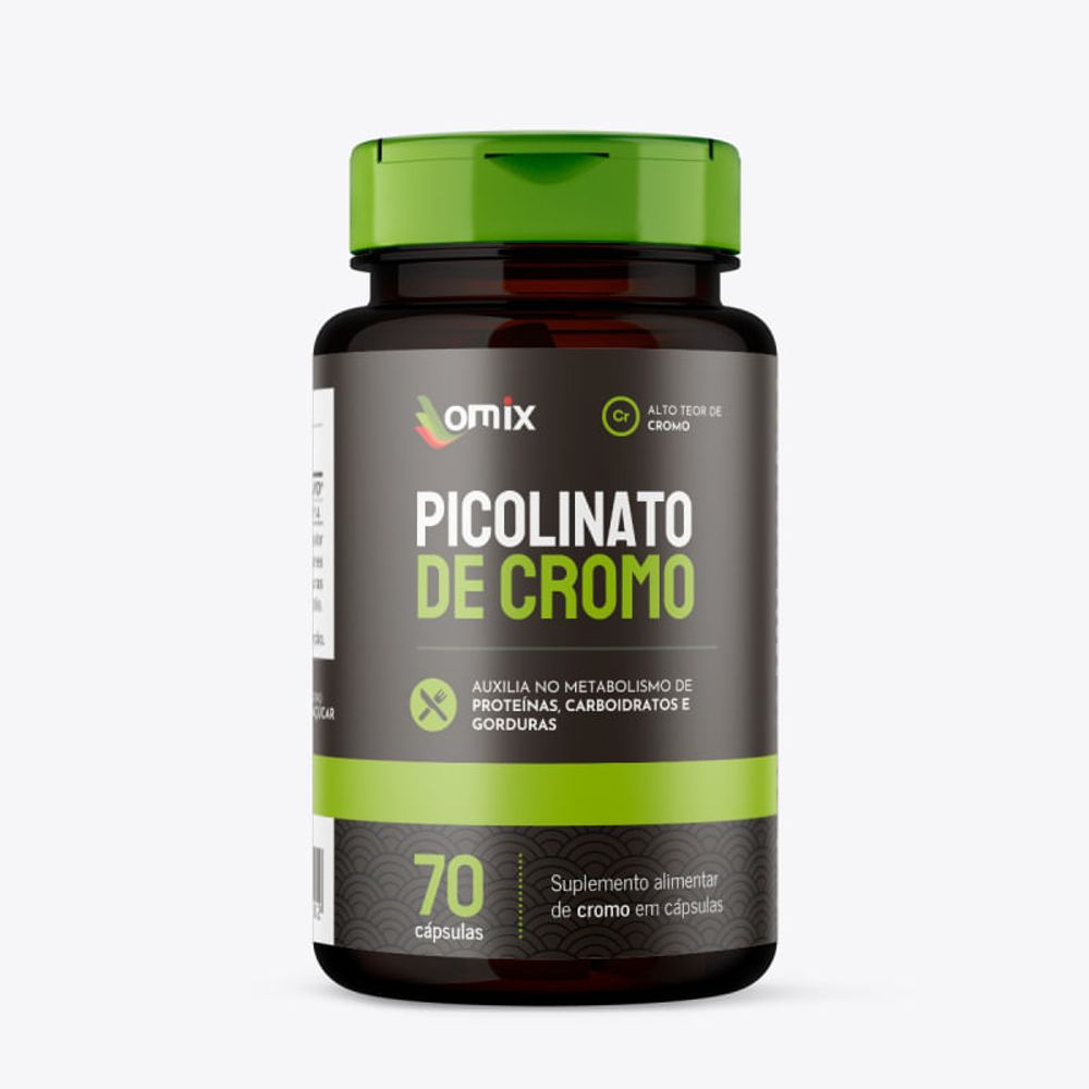 O Picolinato de cromo da Omix é um suplemento alimentar em cápsulas, elaborado com 250mcg de cromo. A embalagem possui 70 cápsulas, proporcionando um rendimento de até 70 doses.