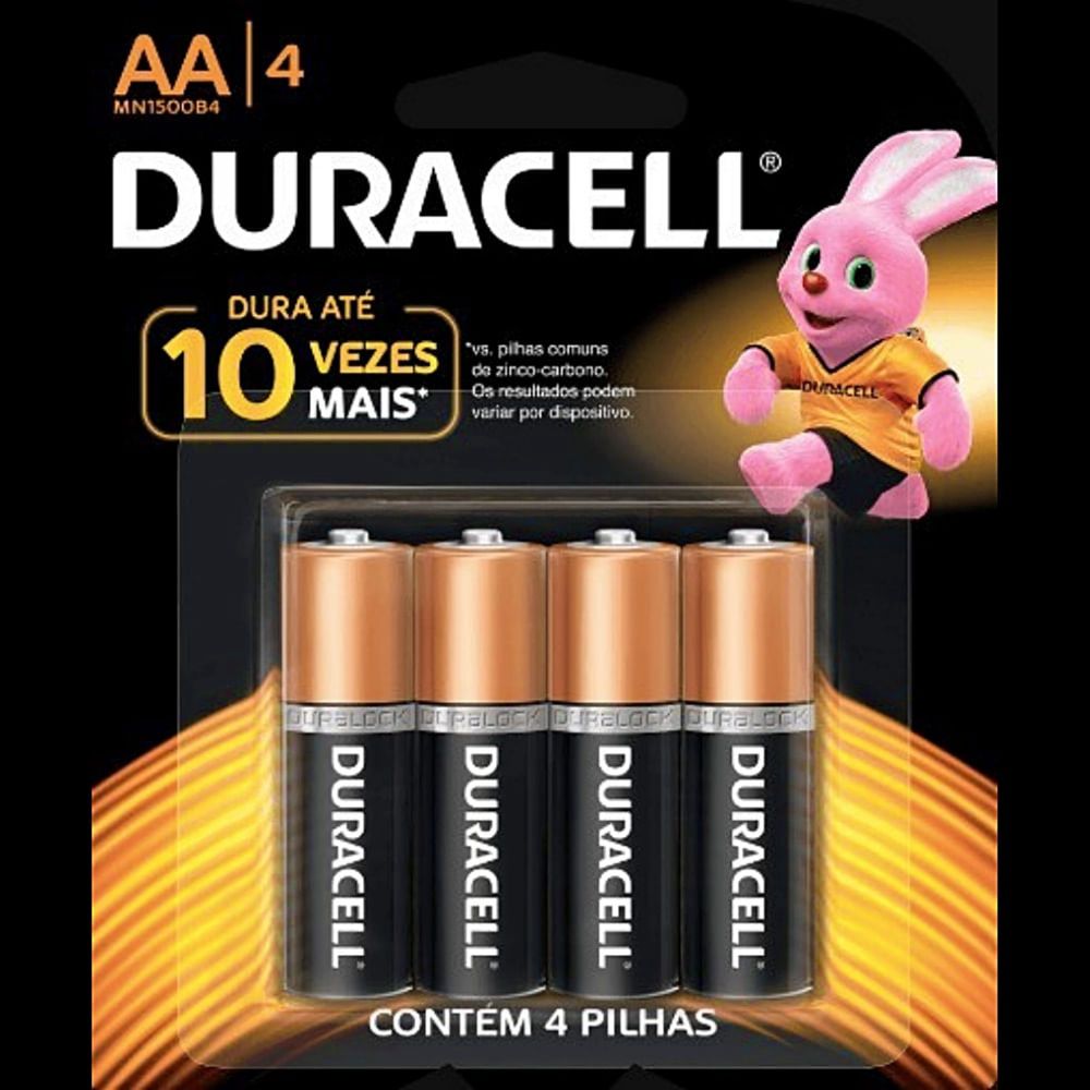Pilha Alcalina AA Duracell 1.5V - 4 unidades