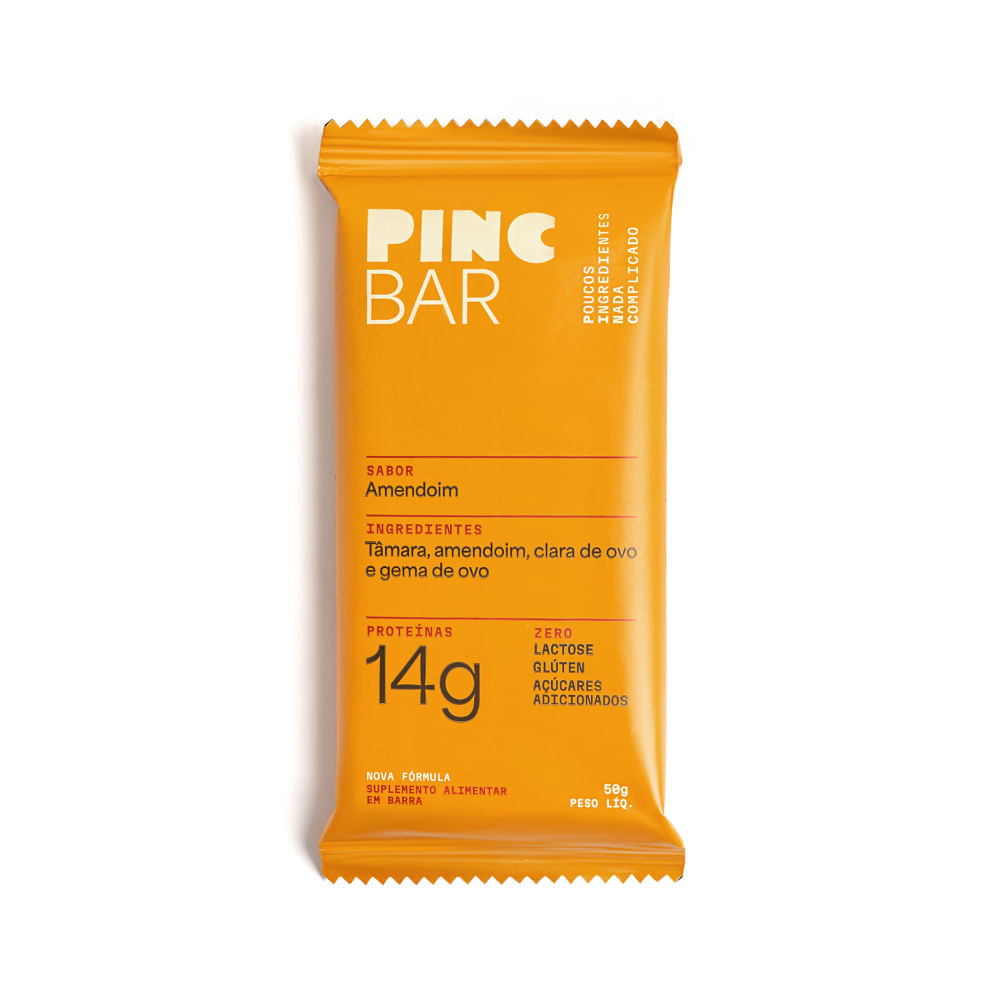 A Pinc Bar sabor Amendoim é um snack proteico prático e nutritivo, elaborado com poucos ingredientes. Sua composição combina tâmaras, amendoim e ovos pasteurizados, resultando em uma barra naturalmente saborosa, com textura macia e excelente aporte nutricional, sem adição de açúcares. Com 15 g de proteína por unidade, é uma ótima opção para quem busca praticidade ao longo do dia, sem abrir mão de ingredientes simples e funcionais. Livre de glúten e lactose, atende diferentes estilos de vida e necessidades alimentares.