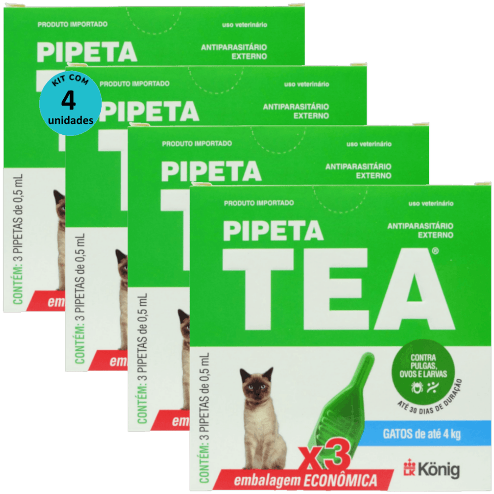 Pipeta Tea 0,5 ml Antiparasitário Contra Pulgas P/ Gatos de até 4 Kg C/ 3 unid. Kit C/ 4 Cxs