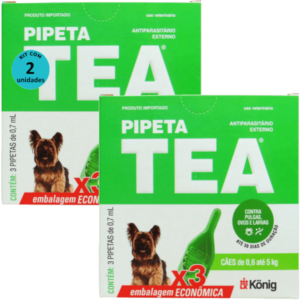Pipeta Tea 0,7ml Antiparasitário Contra Pulgas P/ Cães de 0,6 até 5 Kg C/ 3 unid. Kit C/ 2 Cxs