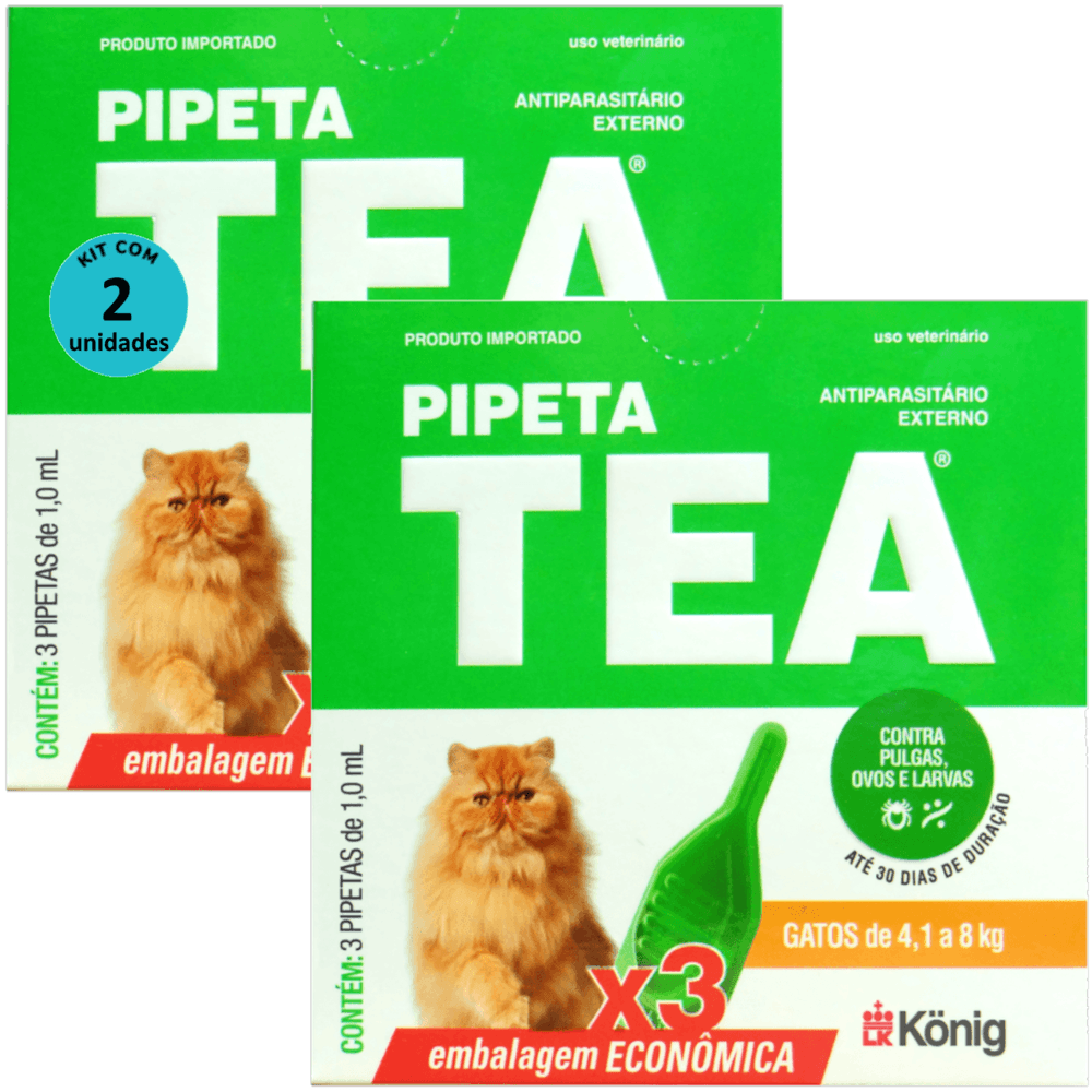 Pipeta Tea 1,0 ml Antiparasitário Contra Pulgas P/ Gatos de 4,1 até 8 Kg C/ 3 unid. Kit C/ 2 Cxs