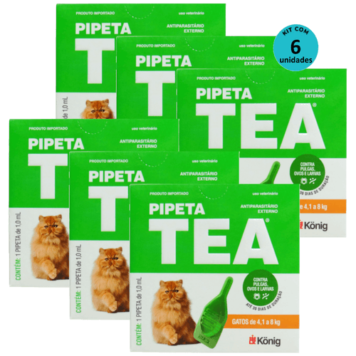 Pipeta Tea 1,0 ml Antiparasitário Contra Pulgas para Gatos de 4,1 até 8 Kg - König Kit Com 6