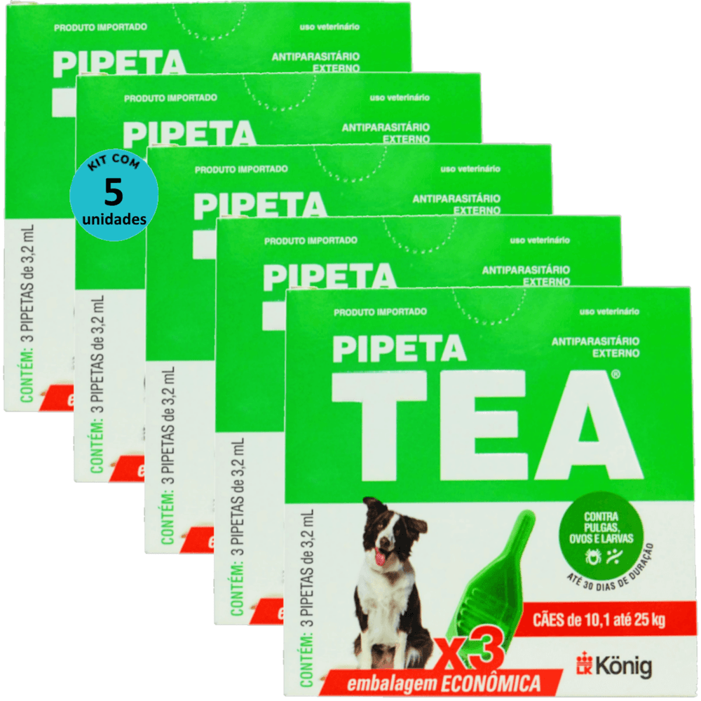Pipeta Tea 3,2ml Antiparasitário Contra Pulgas P/ Cães de 10,1 até 25 Kg C/ 3 unid. Kit C/ 5 Cxs