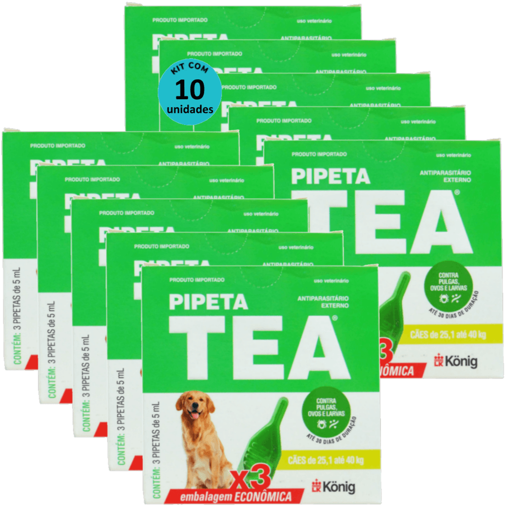 Pipeta Tea 5 ml Antiparasitário Contra Pulgas P/ Cães de 25,1 até 40 Kg C/ 3 unid. Kit C/ 10 Cxs