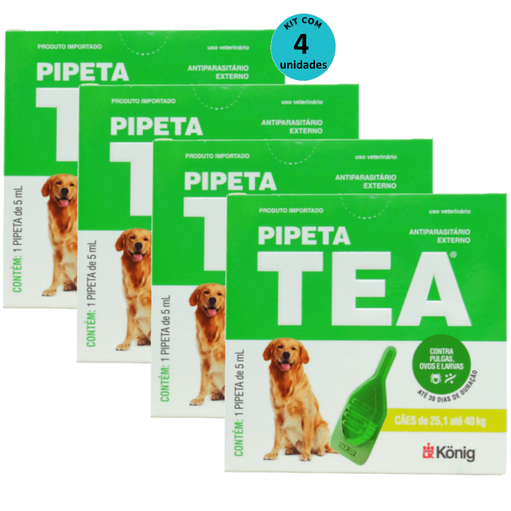 Kit 4 Pipeta Tea 5 ml Antiparasitário Contra Pulgas para Cães de 25,1 até 40 Kg - König