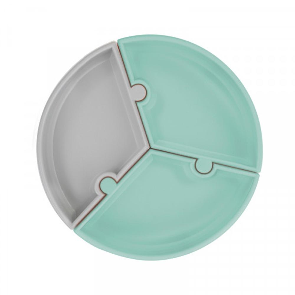 Prato Infantil de Silicone Encaixe Puzzle Verde e Cinza - Minikoioi