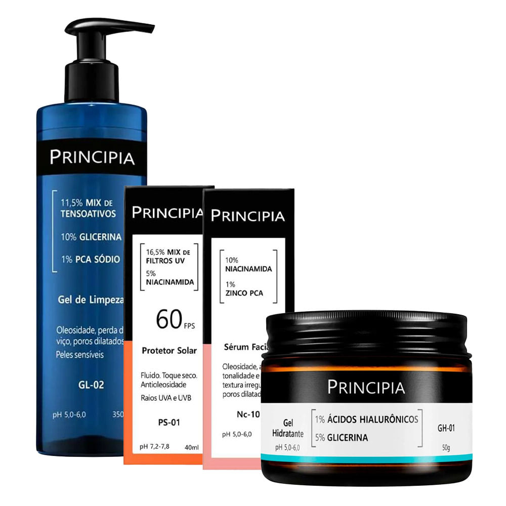 Kit Principia Gel de Limpeza GL-02 350g + Hidratante GH-01 50g + Sérum Nc-10 30ml + Protetor Solar FPS 60 PS-01 40ml