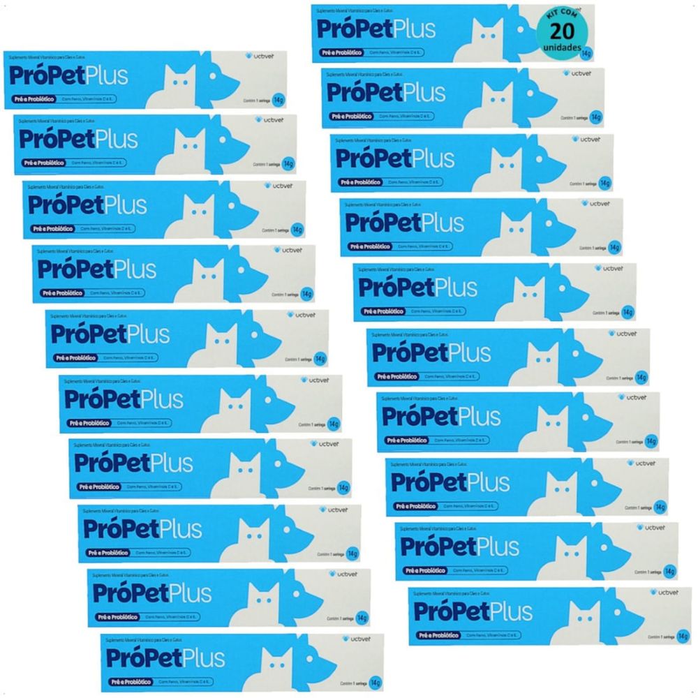 PRÓPET PLUS 14G PRÉ E PROBIÓTICO PARA CÃES E GATOS UCBVET KIT COM 20